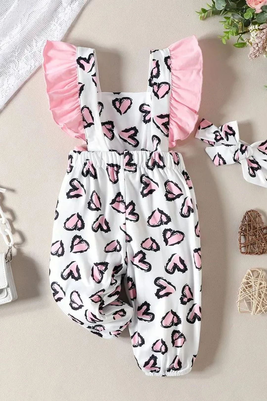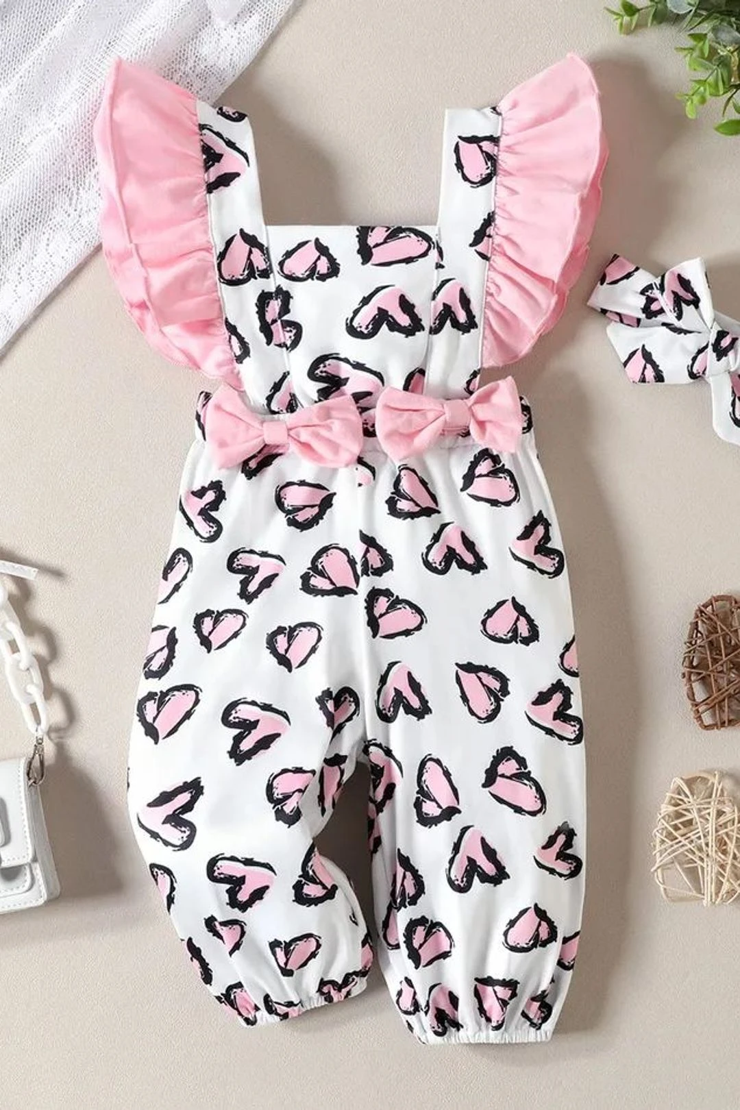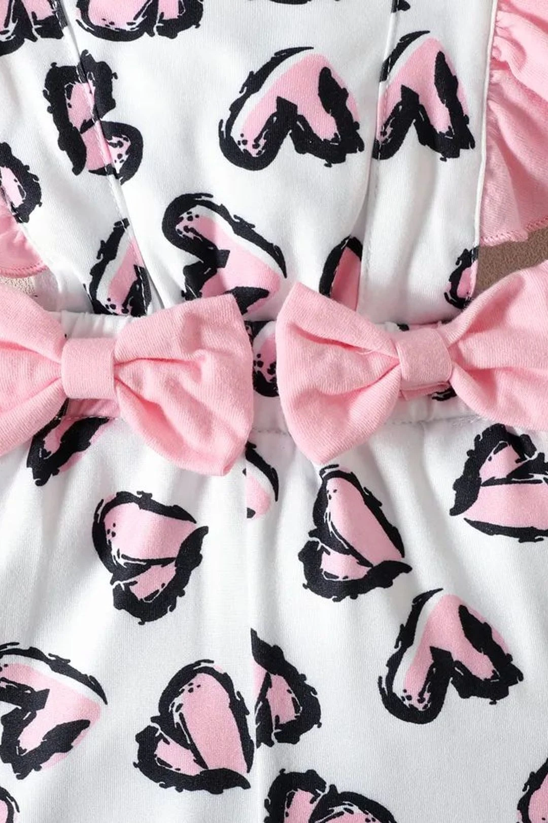 2PCS Lovely Bowknot Heart Printed Baby Sleeveless Jumpsuit