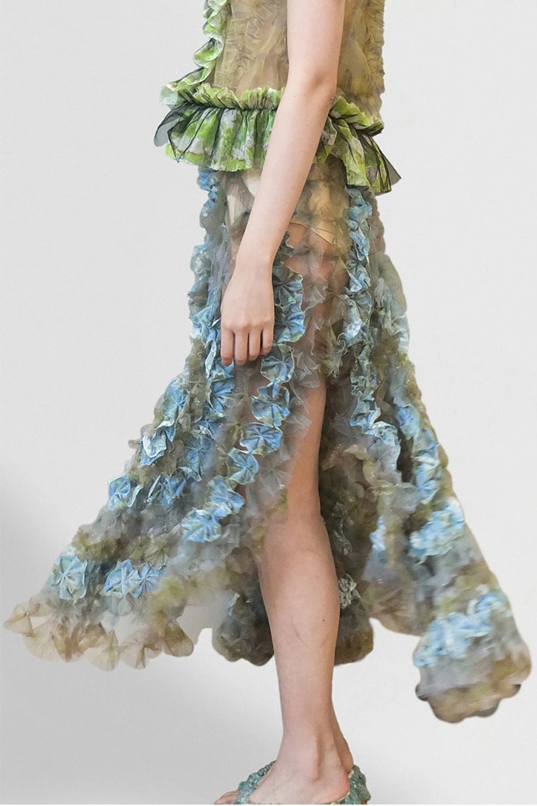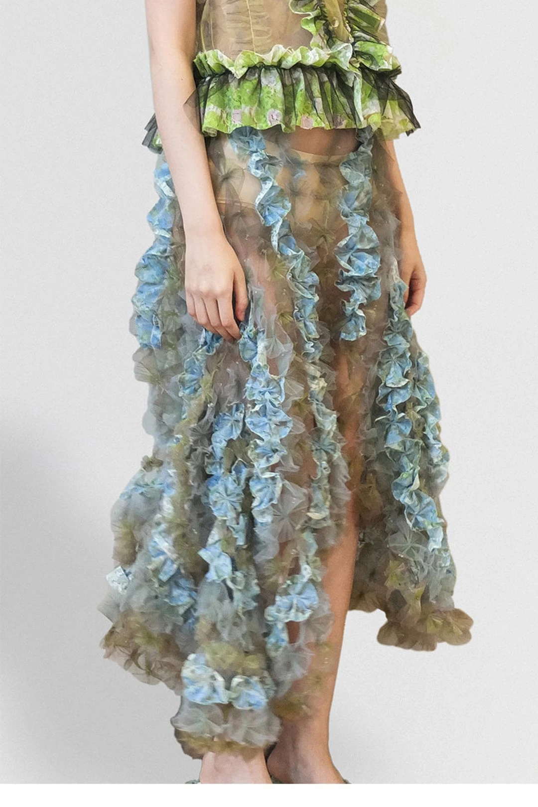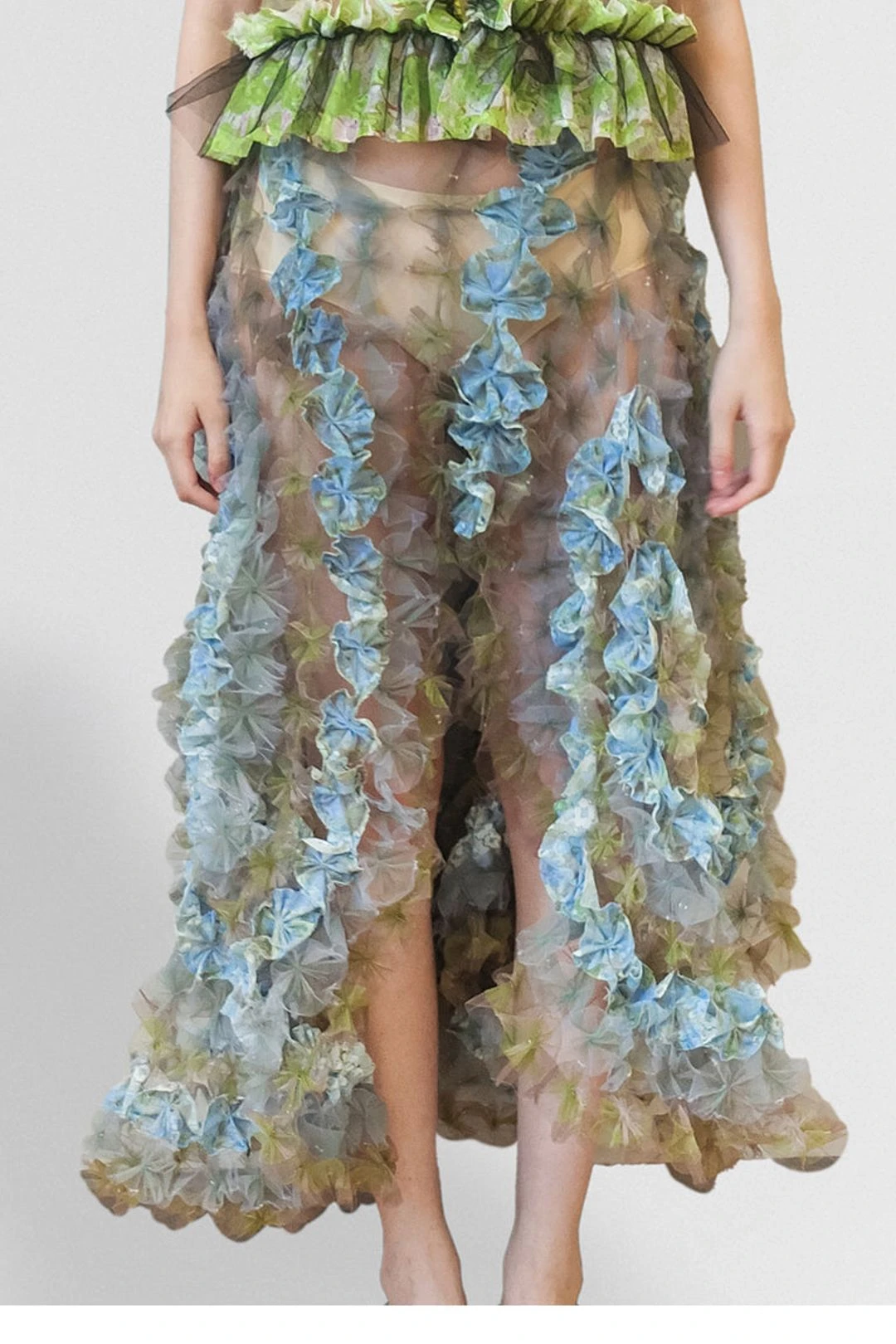 Inspired by our SS23 runway this midi version of air flower skirt made from our signature air flower technique and colorway from SS23 prints and laces. Please note as part of our SS23 pieces this piece will only be sent out by the end of November, therefore the arrival date for the pieces will be around early December 2022.