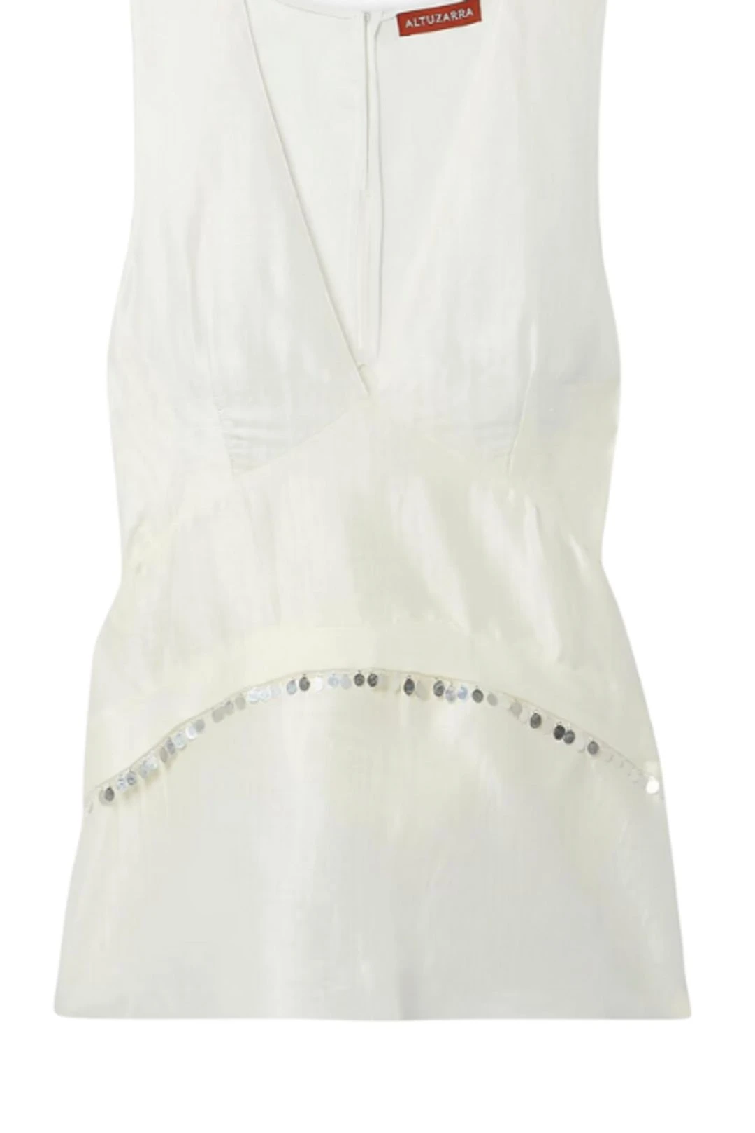True to Altuzarra’s modern design style, the Larysa top combines a distinctive flared shape with charming sequin detailing.