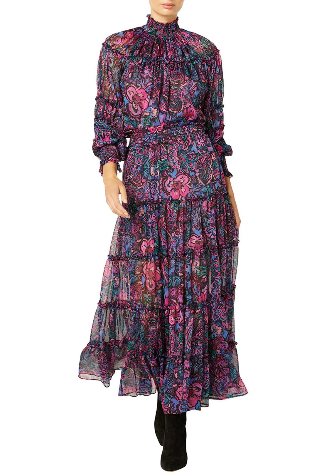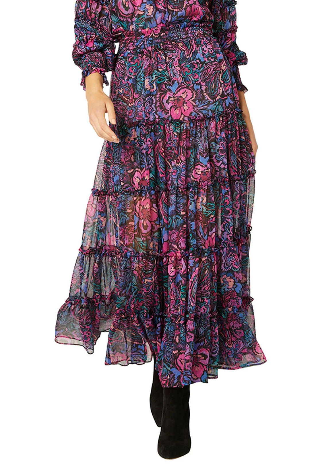 Misa’s Ananda Skirt is a unique and sexy piece that features a side slit, a flattering smocked waistband, and a beautifully breezy silhouette that looks amazing with strappy sandals or chic booties. This luxe skirt is crafted from lightweight poly chiffon and comes in a vibrant floral that can be dressed up or down.