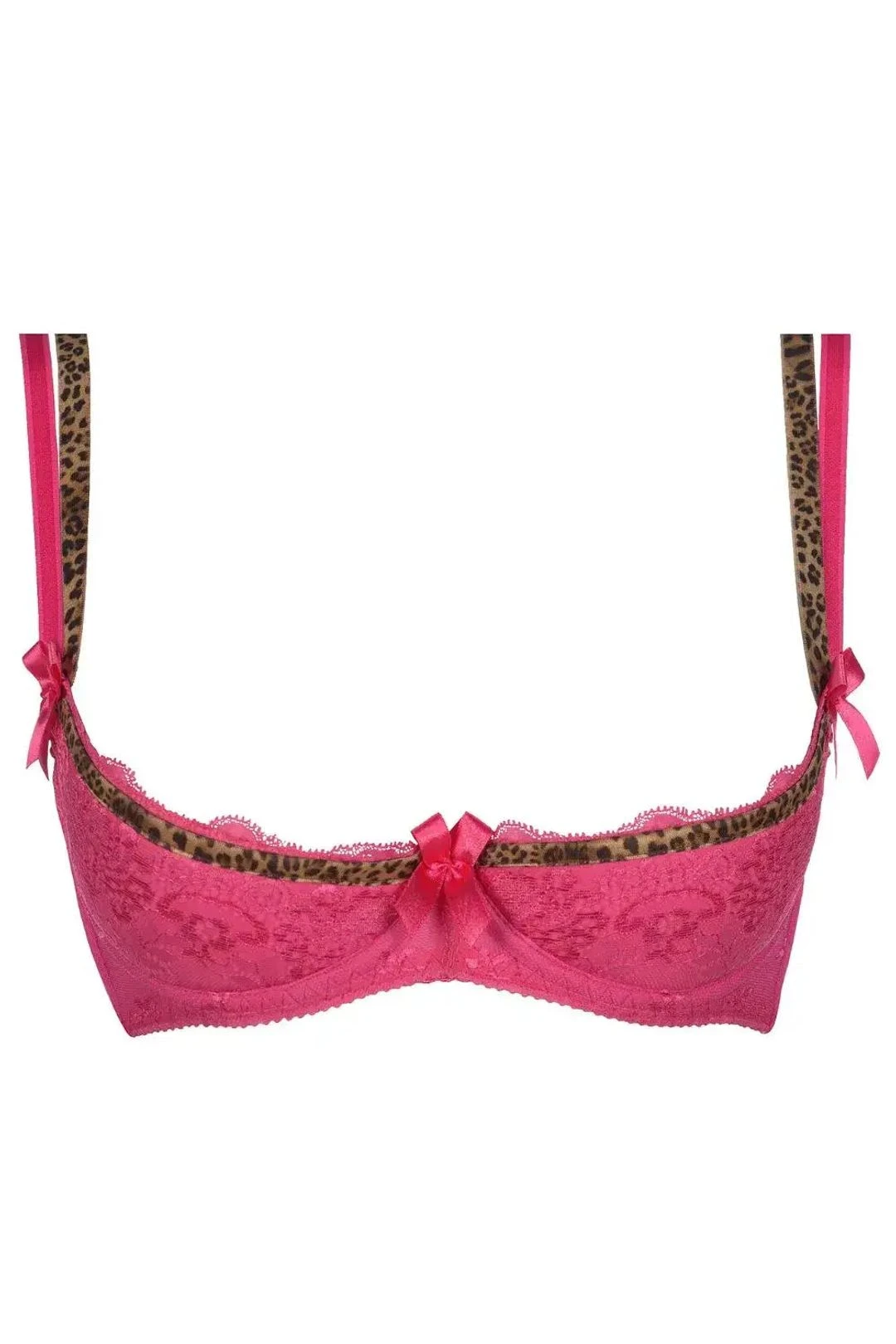 Sweet shelf bra Strawberry Cheesecake, decorated with satin bows and enriched with leopard print straps. It’s flirtatious, sensual and delightfully feminine.