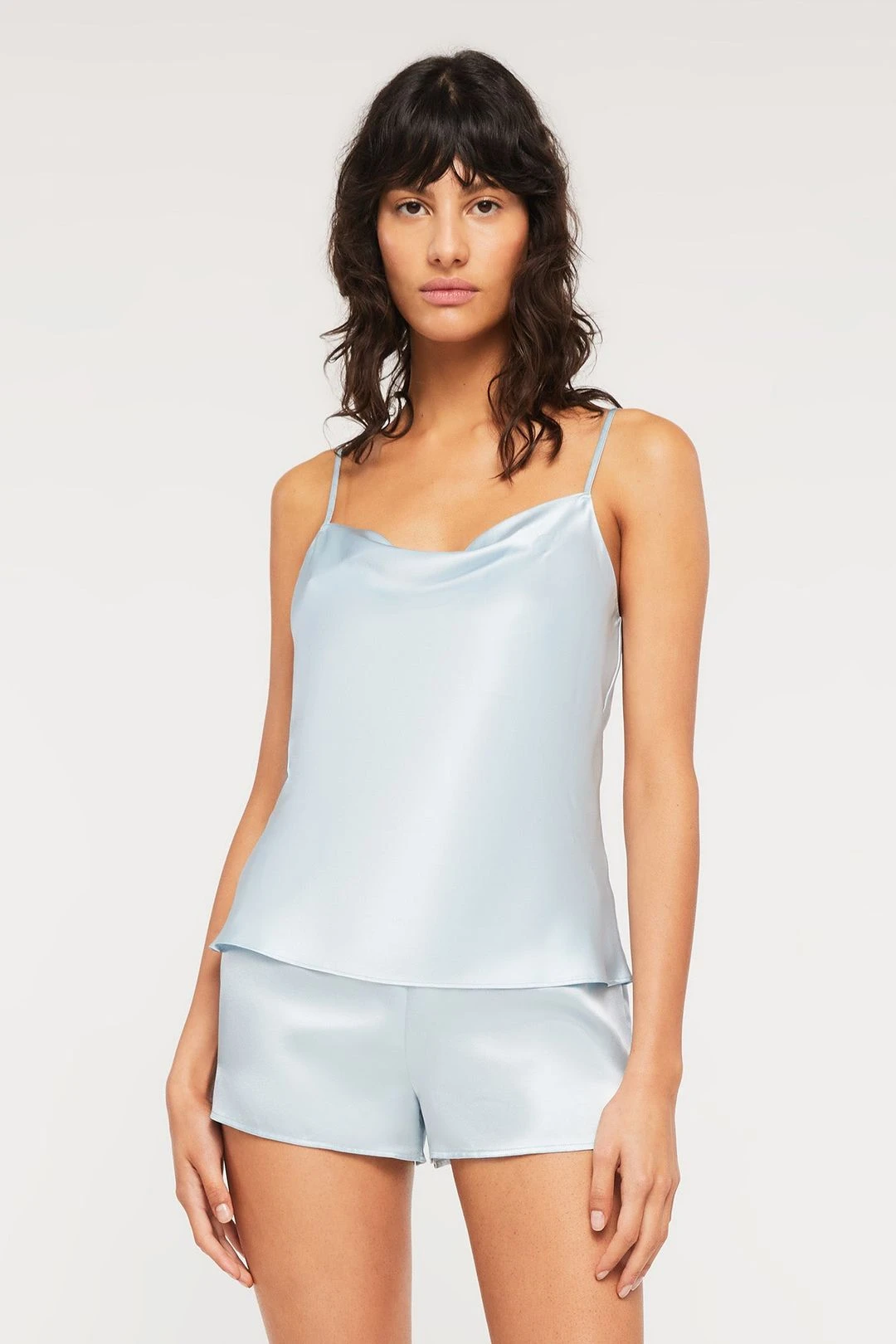 The Billie-Jean Cowl Cami is constructed from 100% S19 Momme Silk and detailed with a cowl neck. The cami is cut on the bias and features thin adjustable straps to flatter the figure.