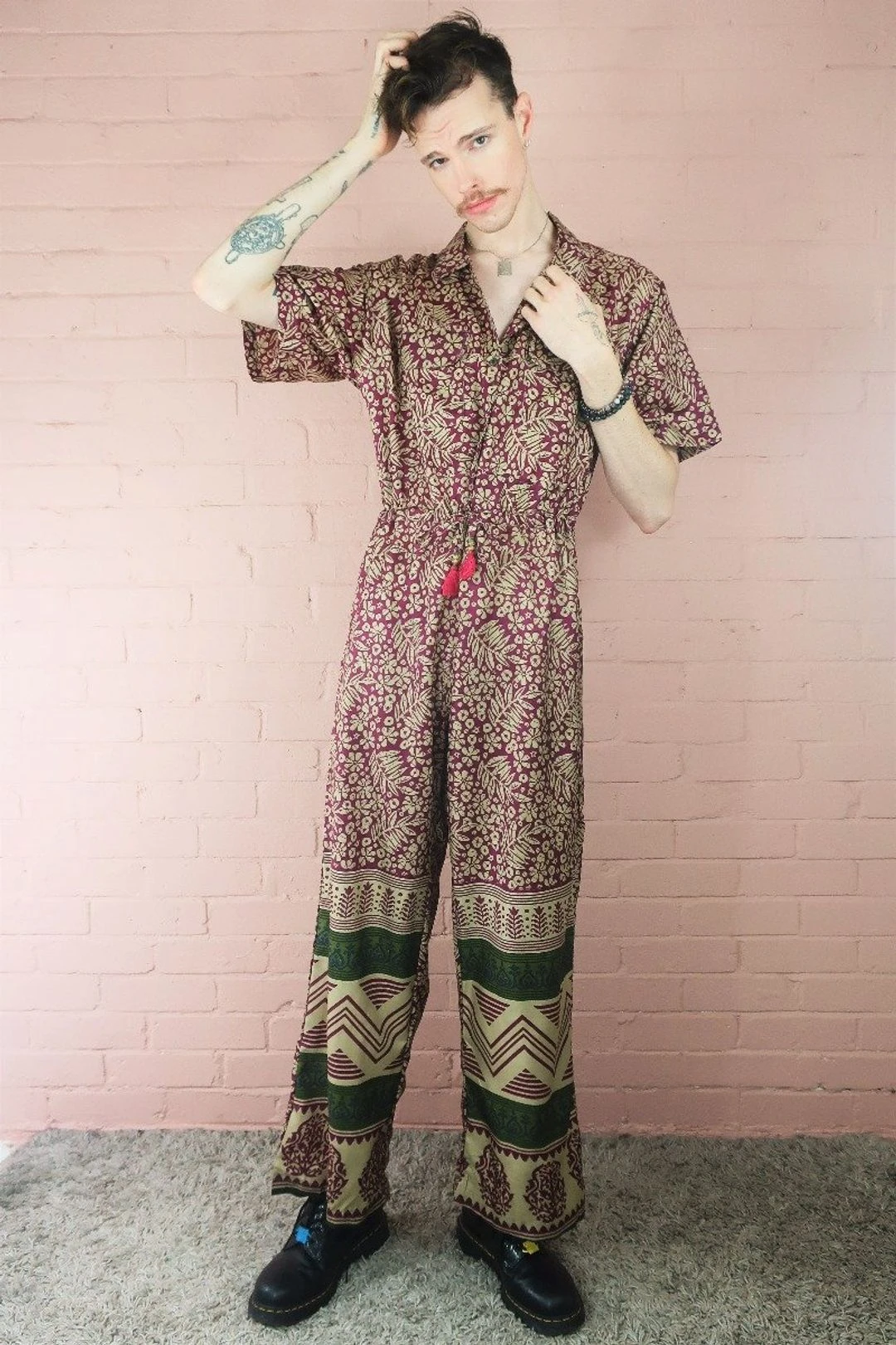 Our gorgeous gender neutral Billie all-in-one style is relaxed fitting for an effortlessly cool bohemian look! All of our Billie jumpsuits are one-of-a-kind, handmade sustainably using recycled vintage sari fabrics.
