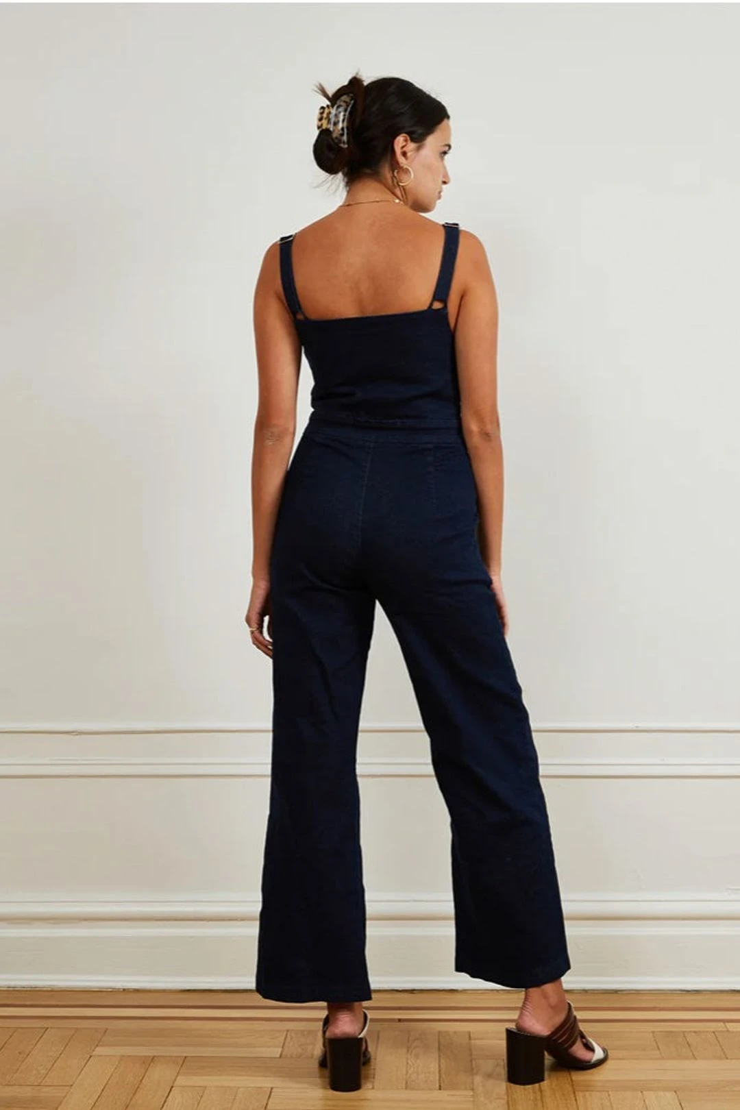 Another perfect denim jumpsuit from LOUP. The Billy Jumpsuit is made from soft stretchy denim and features a front exposed metal zipper, pockets and adjustable straps. 98% Cotton, 2% Spandex. Machine washable. Made in New York City.Â