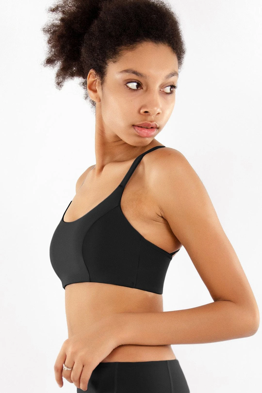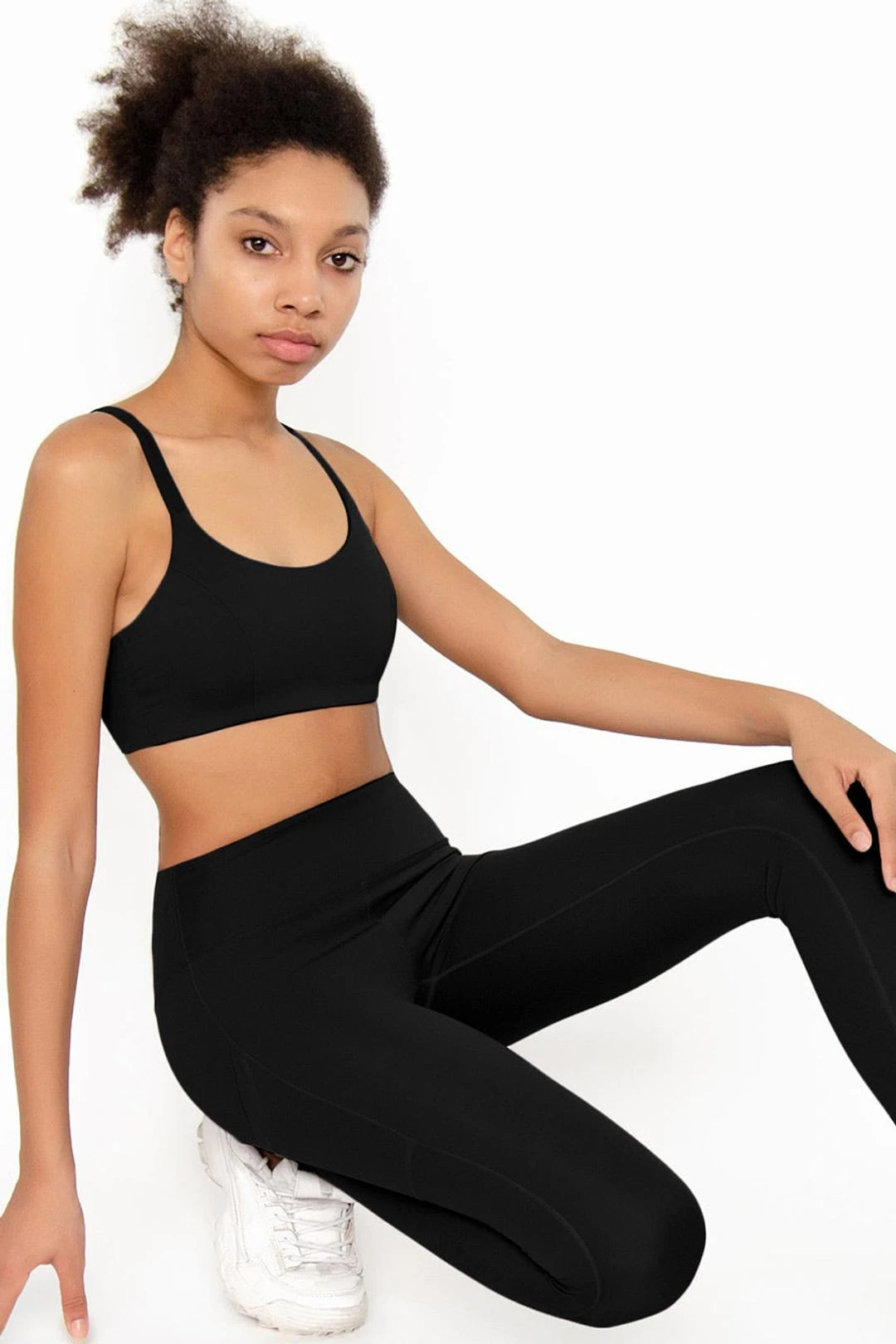 Achieve the perfect balance of performance, style and support with our versatile Black bra. This sports bra features a criss crossed strappy back for a chic fit and removable cups for optional shape. Made from high-quality, soft, flexible fabric, this active bra offers breathability and a range of motion. With a full coverage, it allows you to focus on your practice without any readjustment. Great option for gym, yoga, pole dance, and more.