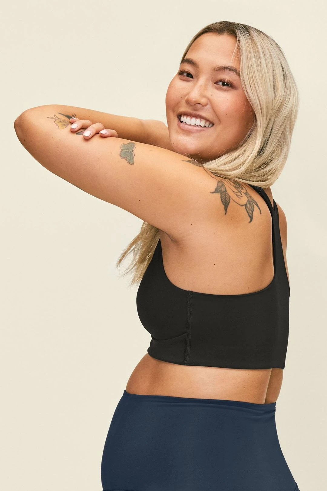 A classic crossover bra that’s soft, stretchy, and perfect for nursing on-the-go, fitting fluctuating cup sizes and wanting to keep trash out of the ocean.