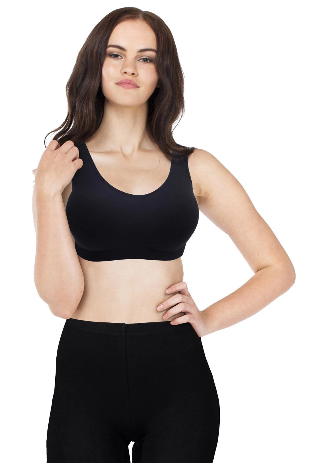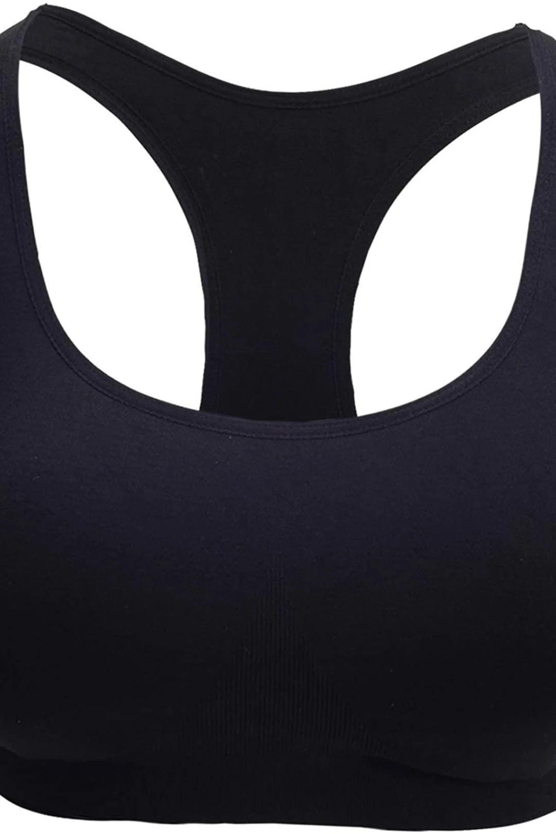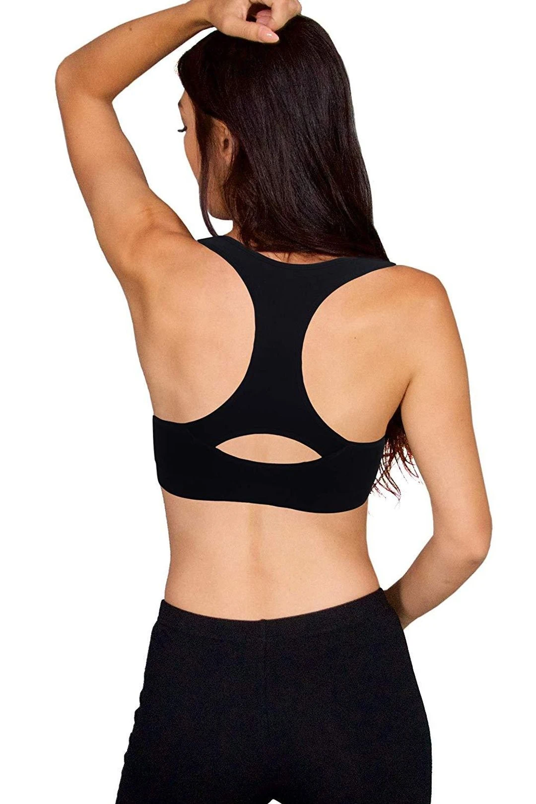 - Material 90% Nylon & 10% Spandex. Removeable Pads for Ladies Sports Bra. Med-impact support ideal for yoga, pilates or weight training.