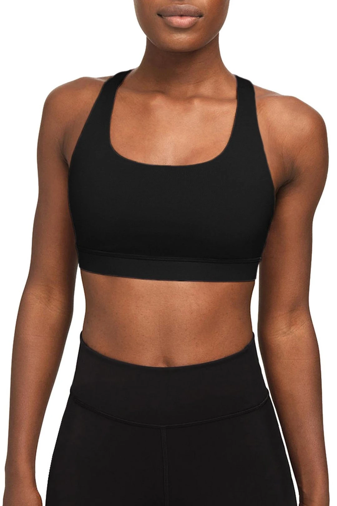 Essential black color together with a racerback style makes this sports bra a versatile addition to every workout woman’s closet. Made from buttery soft, lightweight, recycled poly, it allows breathability & cozy feel. Fully lined, this yoga bra features a comfy elastic underband that provides 4-way-stretch and easy movement. It is designed to fit like a glove with just enough support & coverage. Perfect option for yoga, boxing, gym and outdoors.