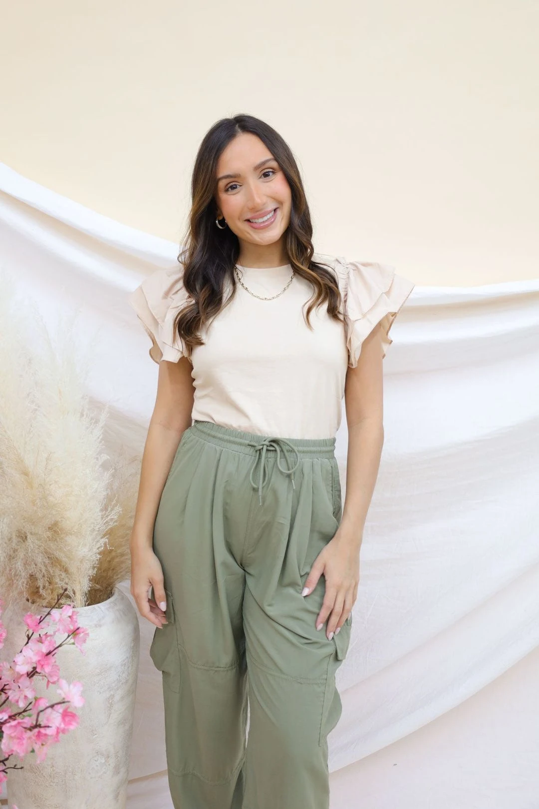 You can never go wrong with an elevated tee for summer! But this isn’t your regular tee, it features the sweetest flutter sleeves that add a little pizazz to any look. Pair with jeans for a classic look or style it for work with your fav pair of trousers. Our By The Light Taupe Top will definitely be your most worn piece in your closet! Runs true to size.Â