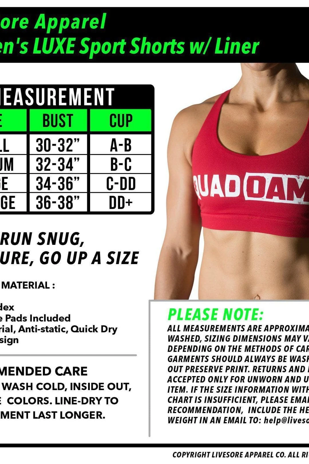 Sizing Notes These fit accurately to a bit snug depending on your lats, traps, and cups of course. These are meant to be “supportive” sports bras, so designed to be on the snug side rather than loose. So if in between sizes, please go up a size.