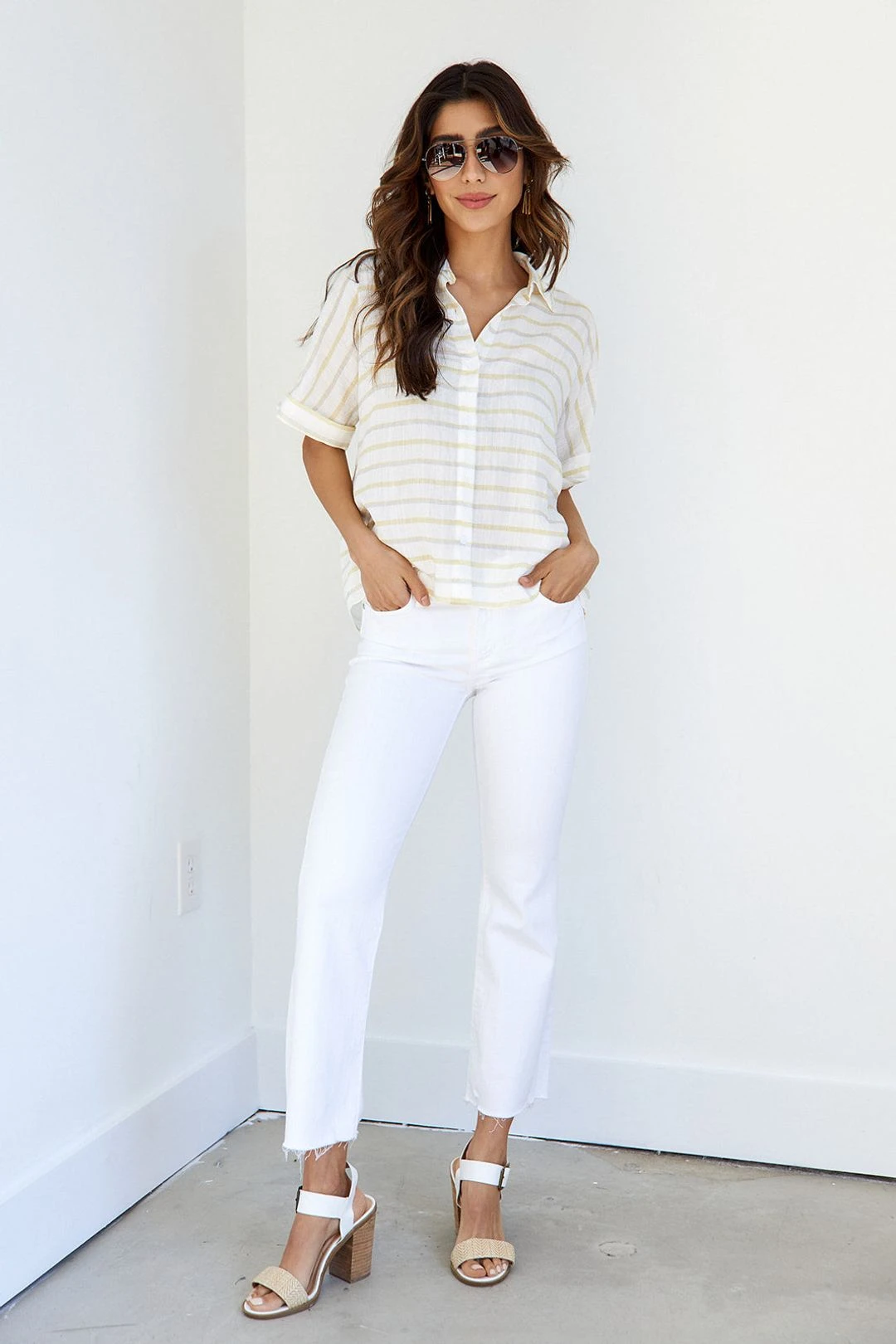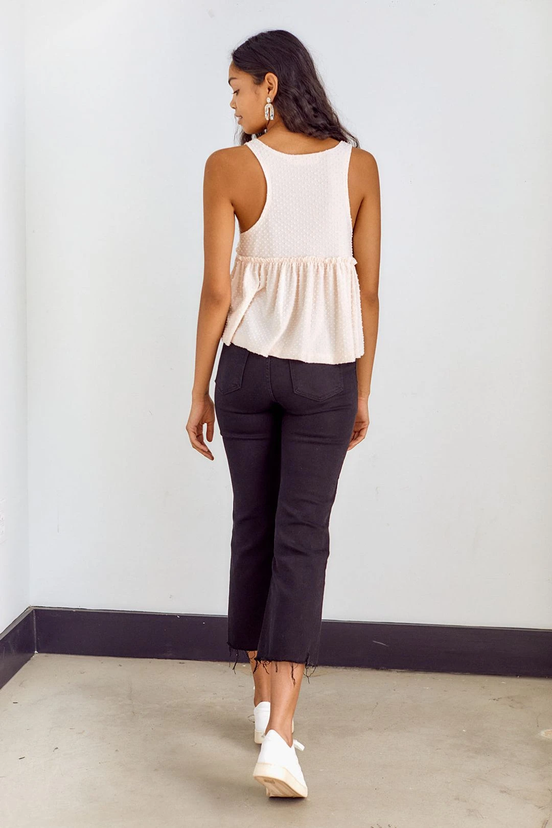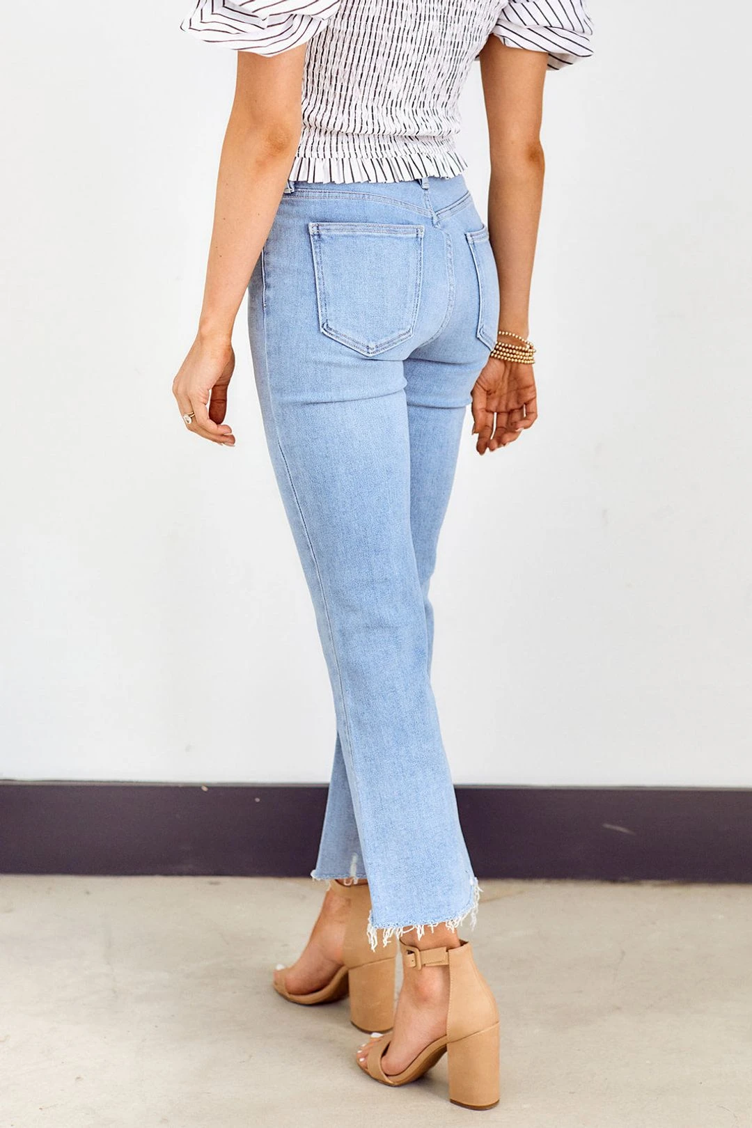 An absolute must have this season, the Canyon Distressed Hem Crop Flare Denim is the cropped flare jean you are seeing everywhere. This high rise jean features subtle distressing at the hem, 4 functional pockets and is cropped at the perfect length to show off your favorite booties this season.
