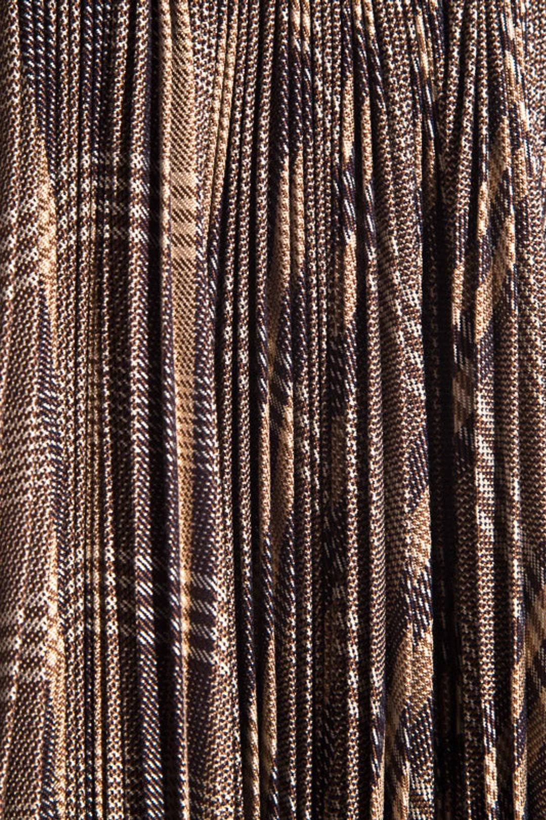 Céline Brown Glen Plaid Skirt with raw edge hem and button/ zipper concealed closure. This item is in good condition.