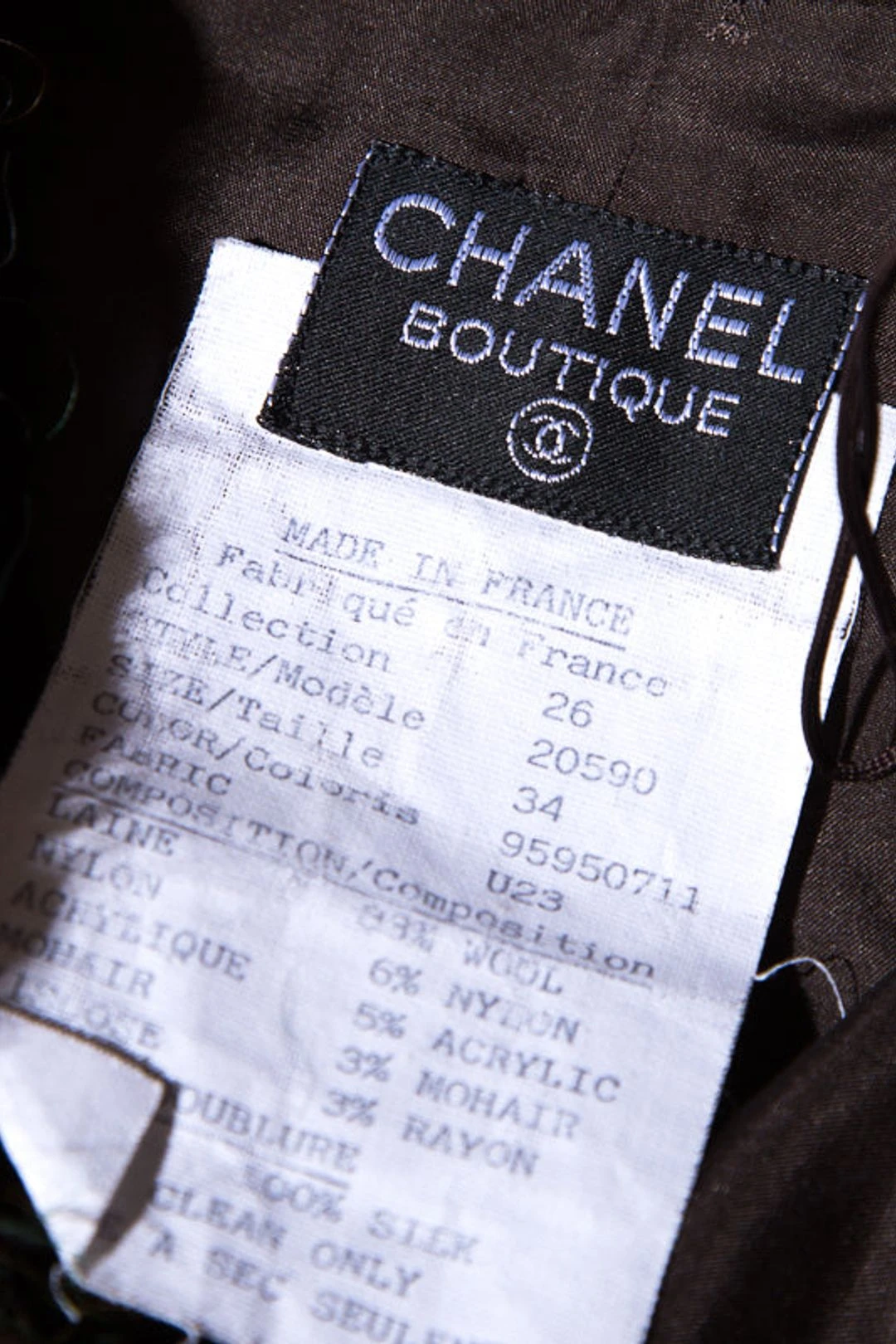 Vintage Chanel Boutique Green & Brown Tweed Mini Skirt. This item is in good condition but has loose thread.