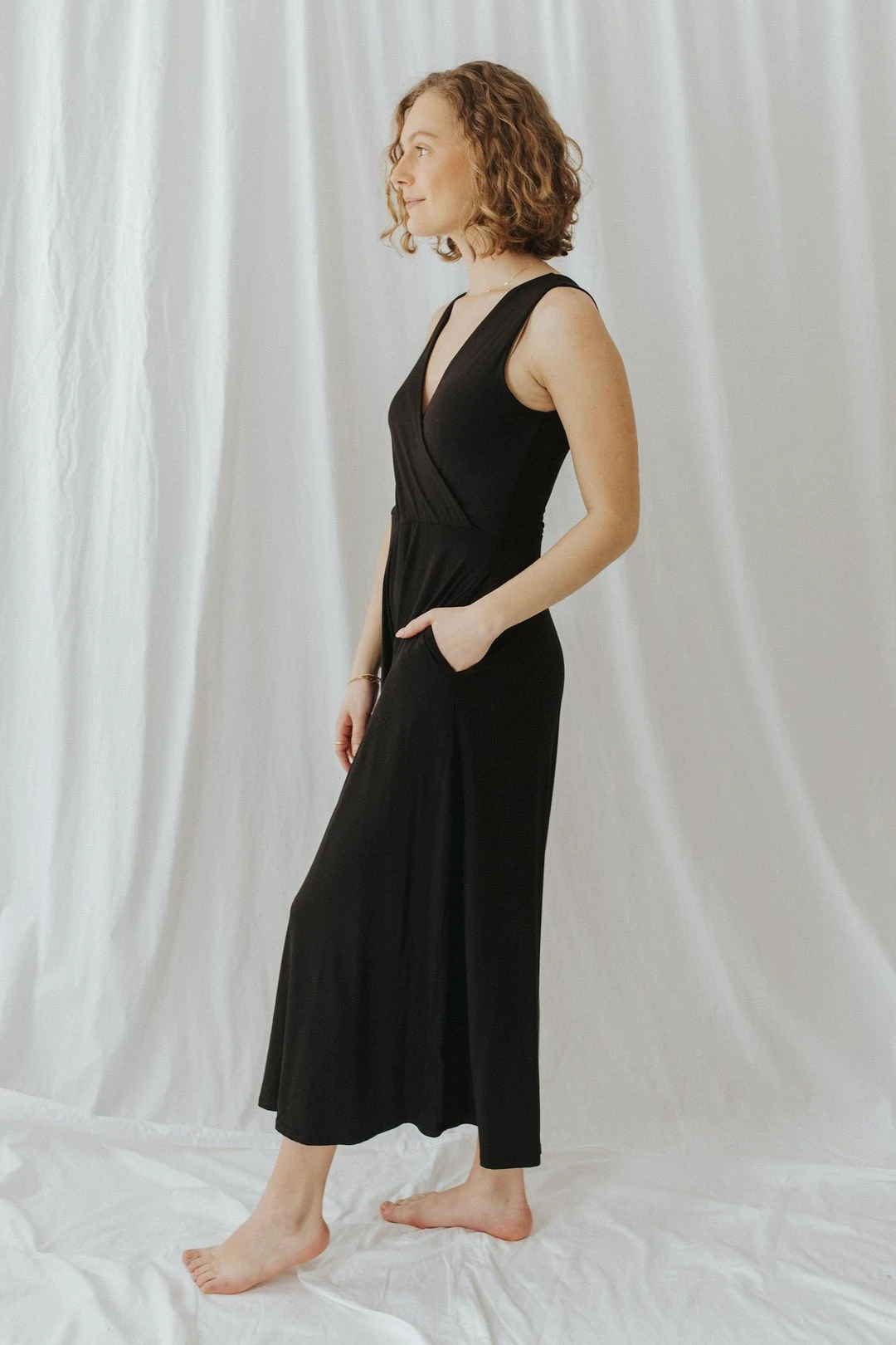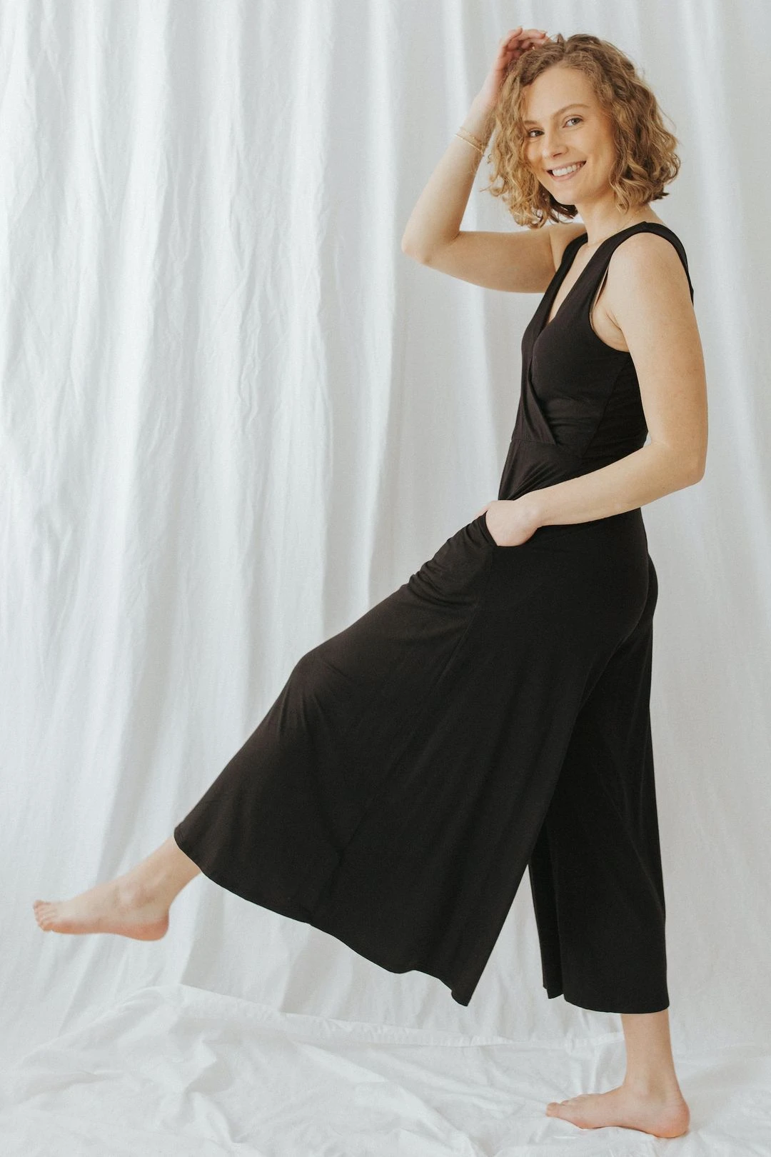 Jumpsuits are a must-have staple and the Clara Wrap Jumpsuit is no exception! The Clara is made of the softest fabric. This jumpsuit has a wrapped tank top, a stretchy waist, cropped flowy legs, and pockets. This is the best universal jumpsuit, it will look amazing dressed up or dressed down. The limits are endless with this one!Â