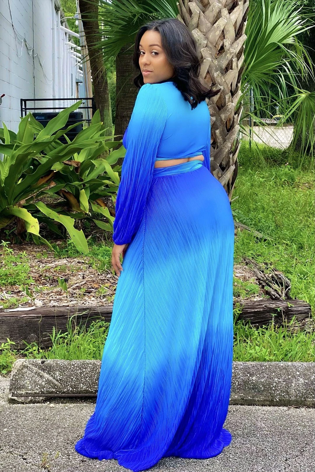Multi print maxi skirt set features, a semi stretch fabric, long sleeves, high waist maxi skirt