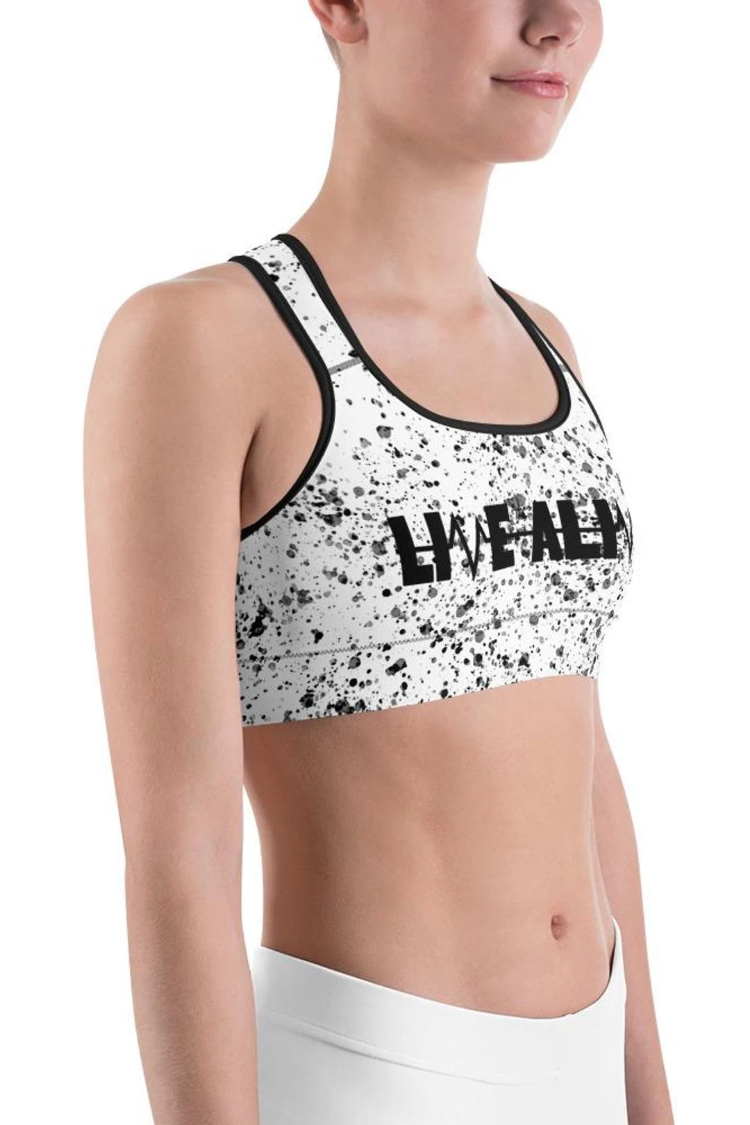This gorgeous sports bra is made from moisture-wicking material that stays dry during low and medium intensity workouts. The bra has support material in the shoulder straps, double layer front, and a wide elastic band to ensure constant support.