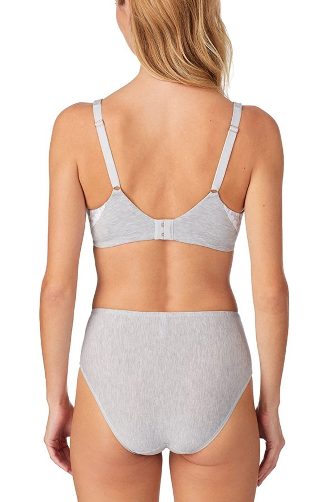 An easy-to-wear unlined silhouette pairs the best of natural comfort features with eco-friendly fabrics and trims to create a sustainable approach to everyday dressing. This sustainably sourced cotton rich jersey knit, is super soft to the touch and its 2-ply cup comfortably moulds to the natural shape of the body. The ultra comfortable 2-ply back wings are paired with a delicate lace galloon which is made with organically grown cotton yarns. Plush elastics and trims are made with recycled fibers spun from post-consumer plastic waste.