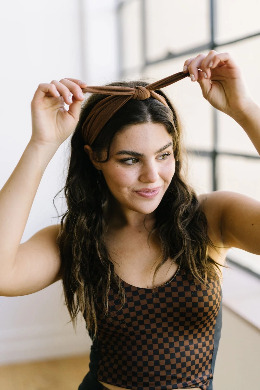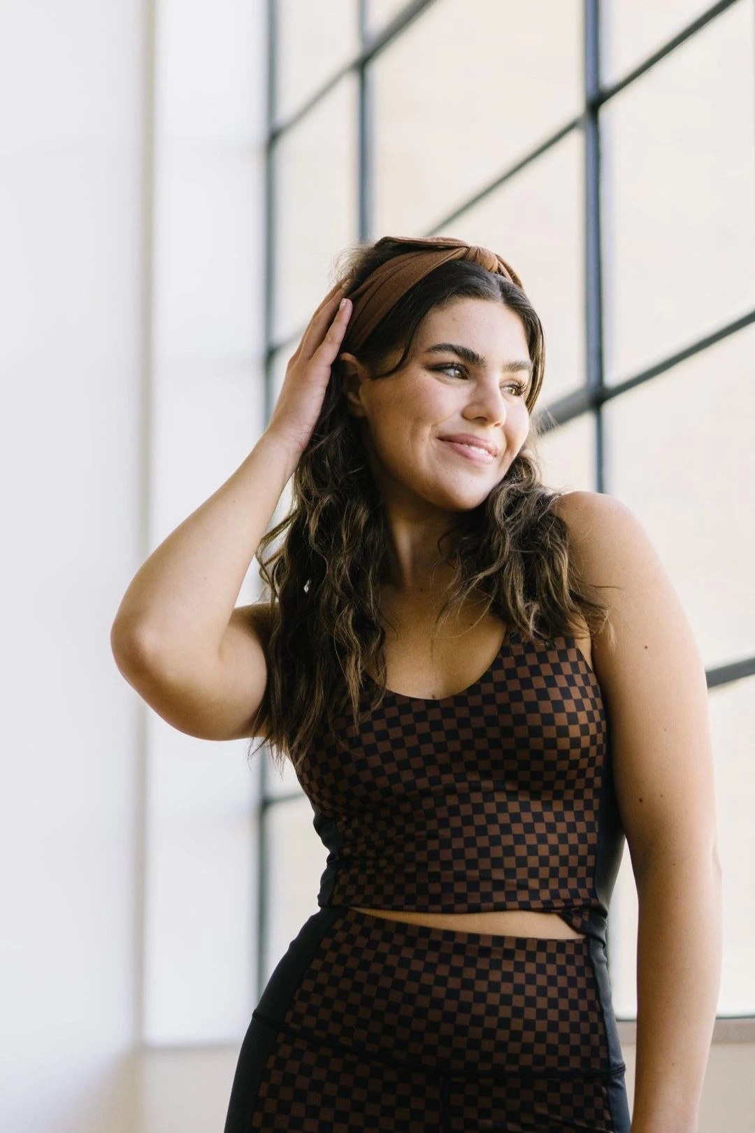 Crop Tank Sports Bra – Brown Checkered | MT SPORT