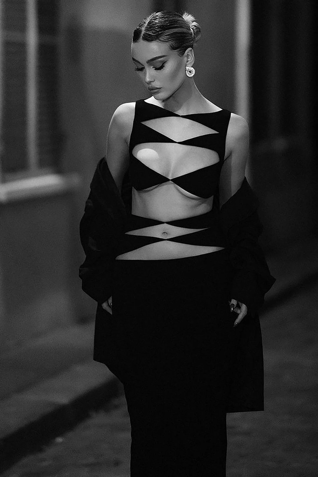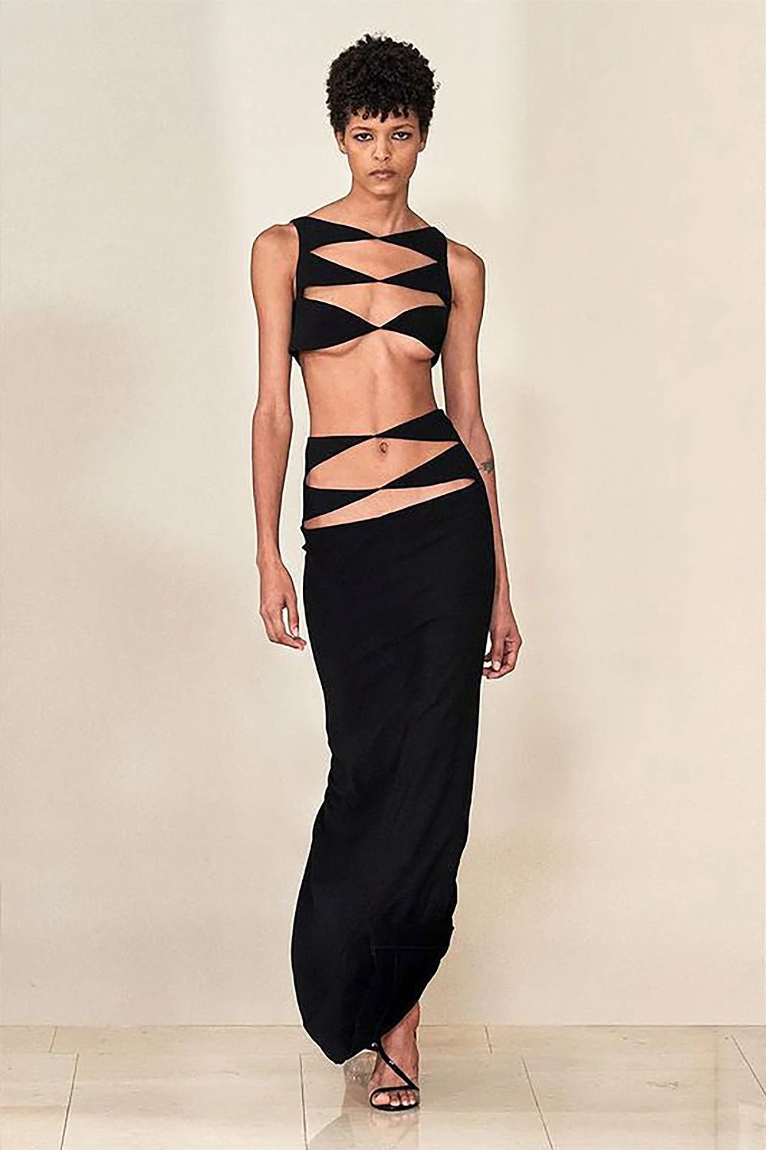 This summer staple has arrived—the Cut Out Top and Skirt set. The top and skirt feature cutouts in white, creating a fun look that’s perfect for any occasion. Enjoy the classic look of this set and flaunt your fashion sense in style.