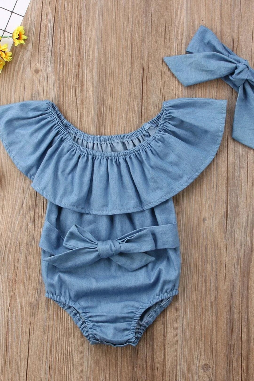 Cute Newborn Toddle Infant Baby Girls Bowknot Bodysuit Ruffle Sleeveless Jumpsuit