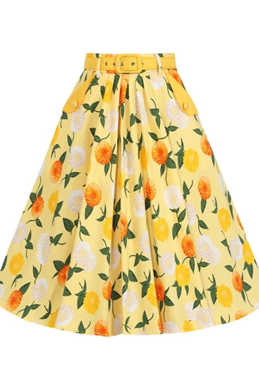 Full of summer vibes – meet our Dakota Sunny Floral Swing Skirt! Coming in our super retro inspired bespoke print, youll feel like a ray of sunshine wherever you go! Wear yours with soft yellows or ivory, and go for a weekend away with our matching Elegant Sunny Floral Daytime Bag!