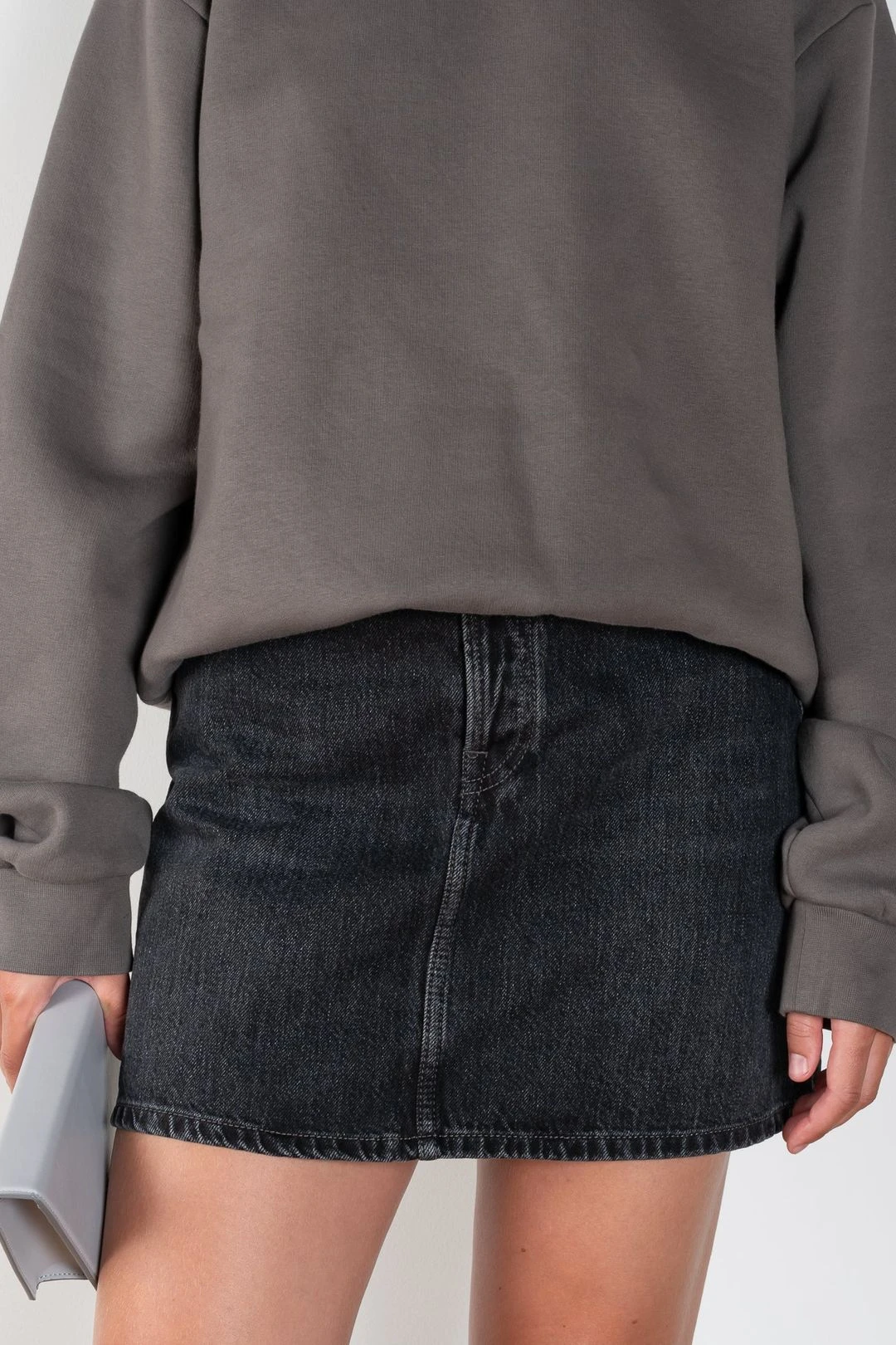 Theย Denim Mini Skirt 388 by Acne Studiosย is cut to a relaxed a-line silhouette with a high rise and mid-thigh length