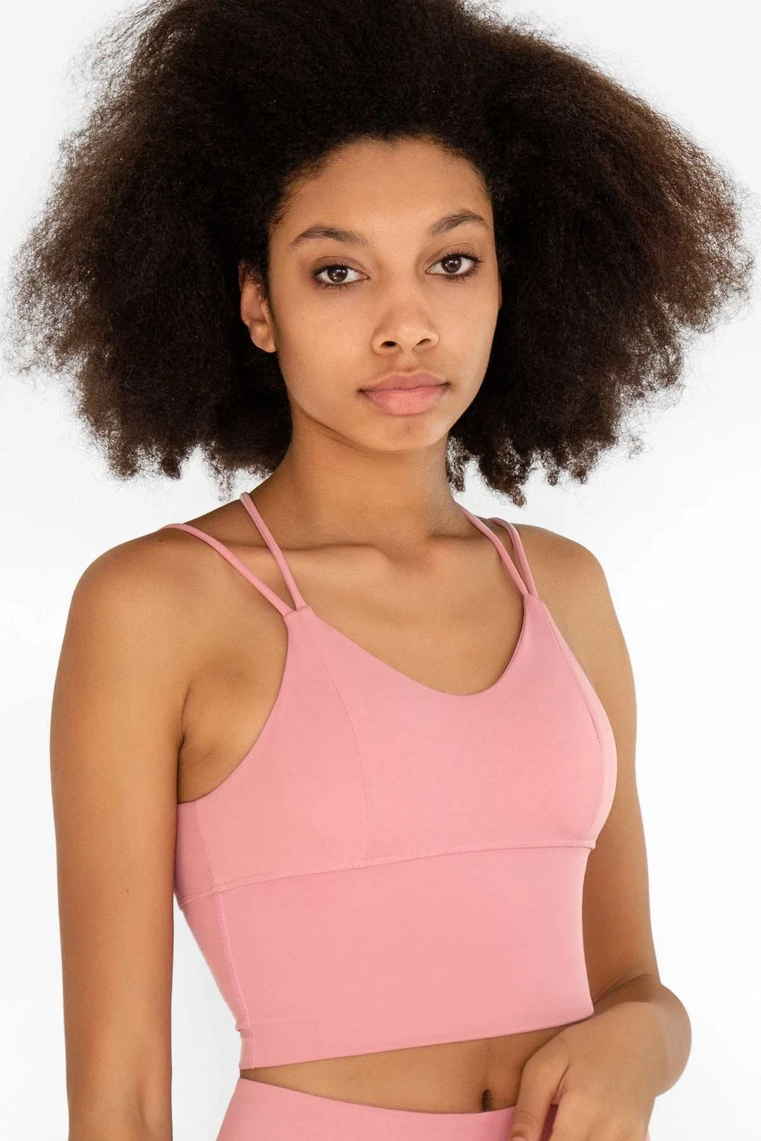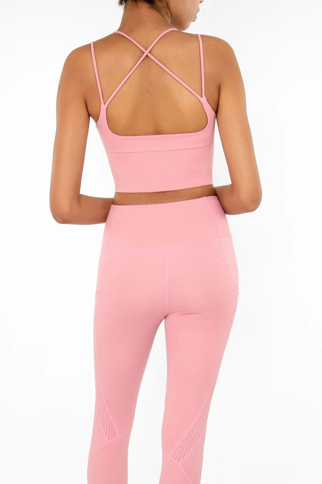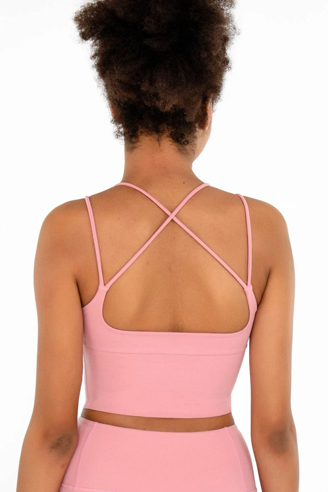 Get a serious update of your basic bras with our Dusty Pink crop top. Designed in a longer length, this sports bra provides good levels of coverage while the shoulder criss-cross straps offer freedom of movement. This active cropped bra features a flattering v-neckline and removable cups for optional shape. It’s made from high-quality, 4-way-stretchy fabric that feels lightweight and feels soft against the skin. Perfect for yoga, gym workouts, running and casual wear.