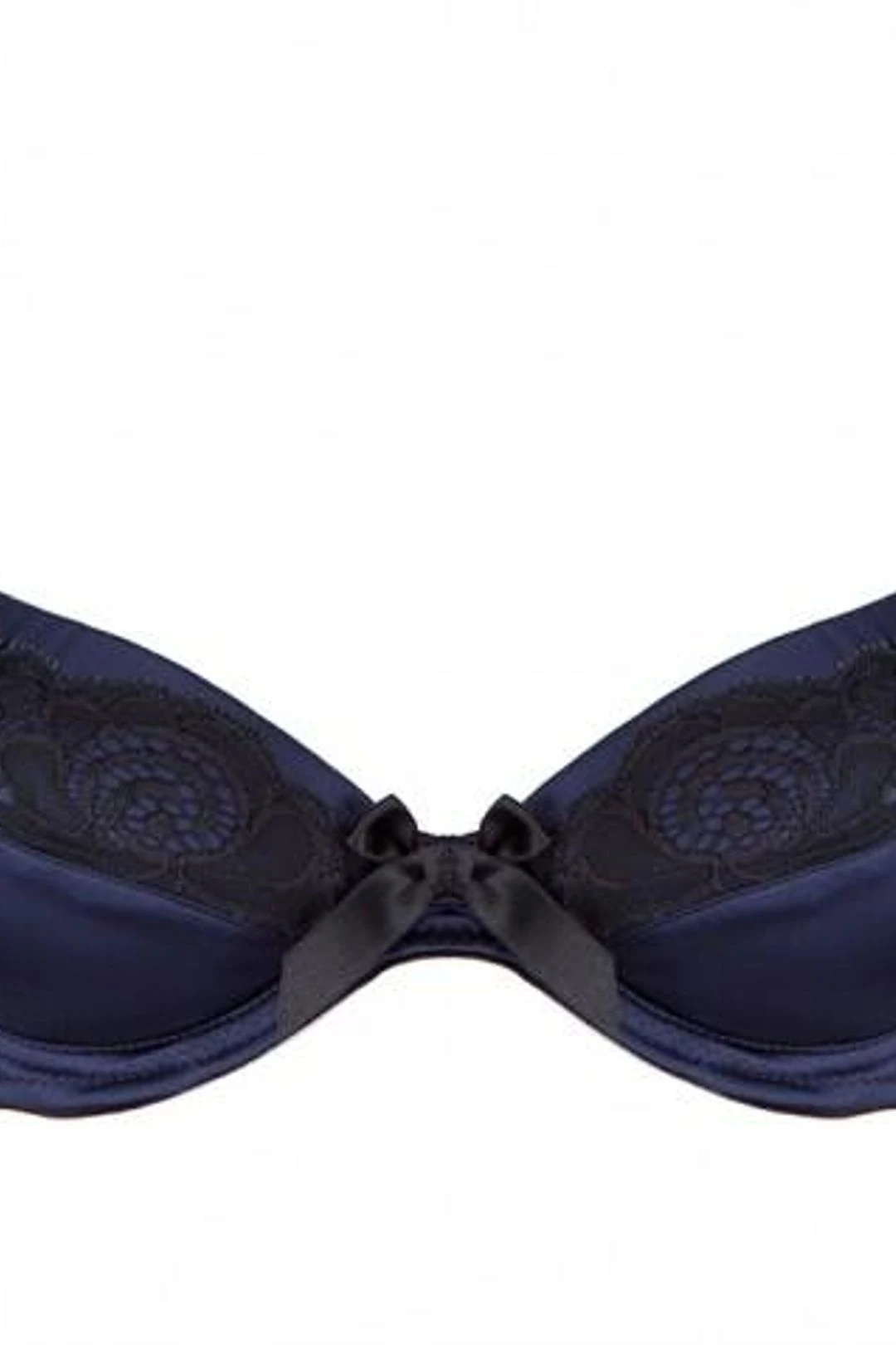 - Dark blue silk padded bra with black Nottingham lace