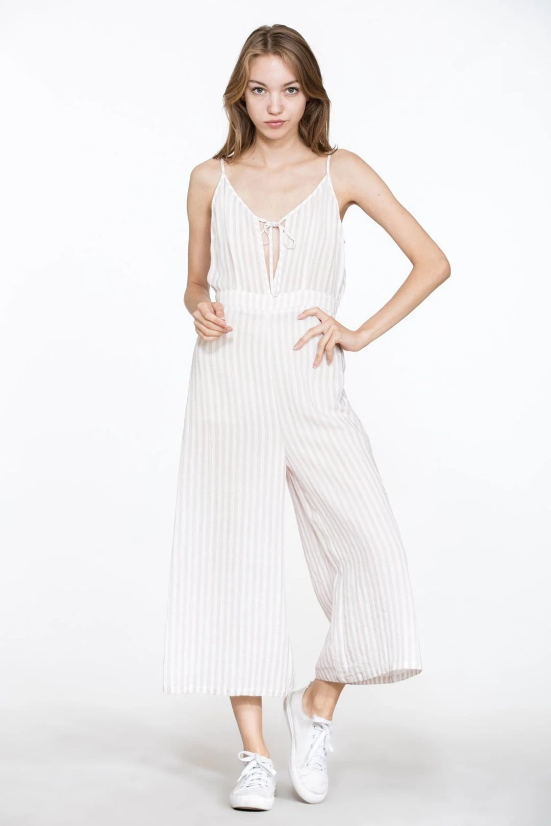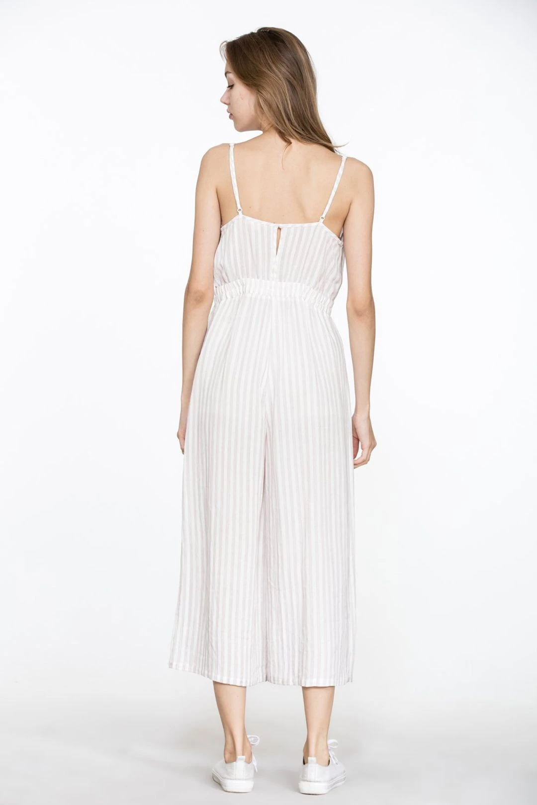 Our Emma petite jumpsuit is designed with petite figure in mind and is the perfect length for short girls. Enjoy comfort without compromising on style with this petite jumpsuit. The taupe and white stripe pattern is so pretty, refreshing and fun. For sure to pack it for your get-aways if you are looking for a chic vacation outfit by the ocean, or just wear it on any relaxing weekends around town.