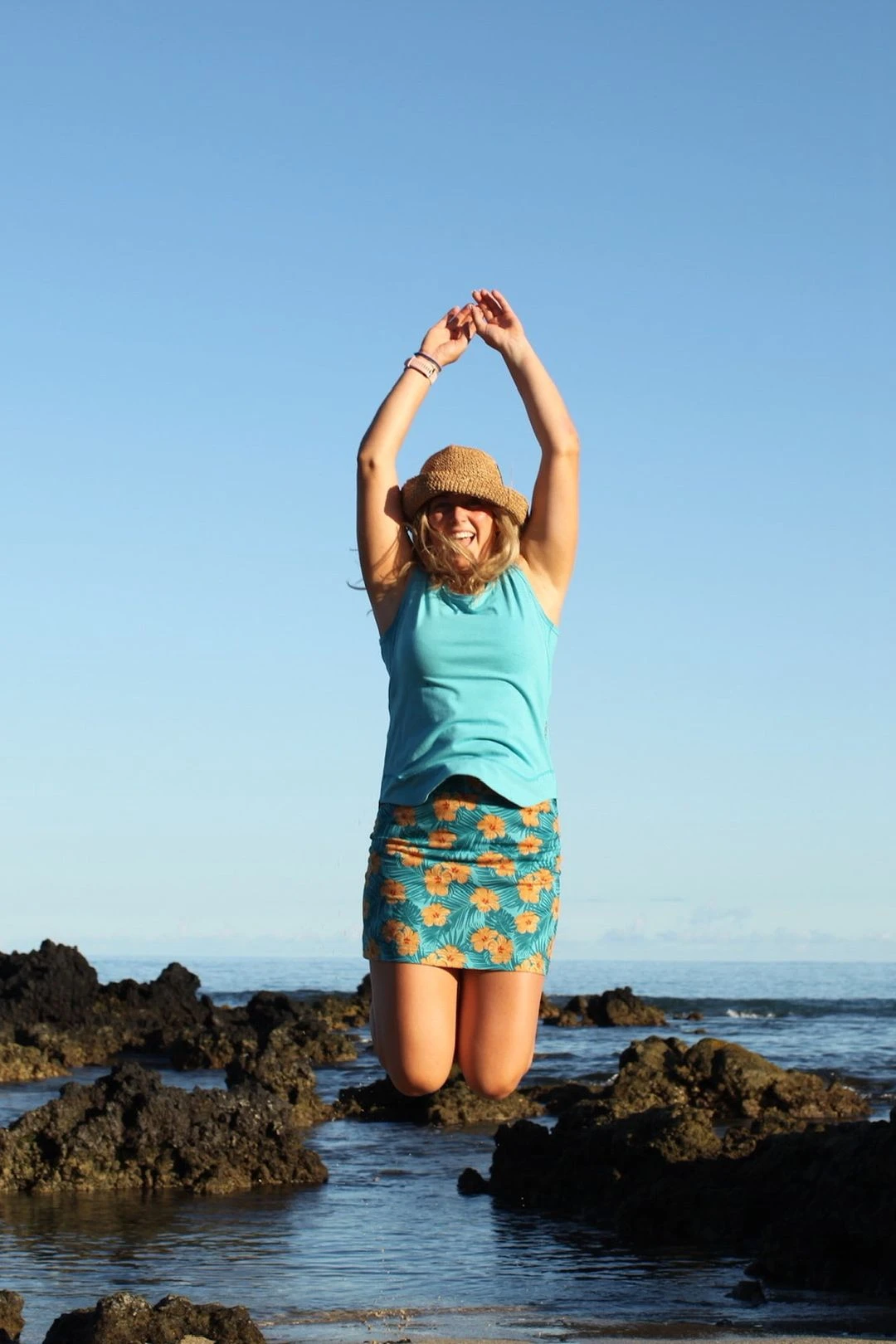 Retro chic! The Eva skirt is the perfect summer skirt, cheerful, colorful, and luxuriously comfortable. Pairs perfectly with our SKHOOP T or Vanja Tank.