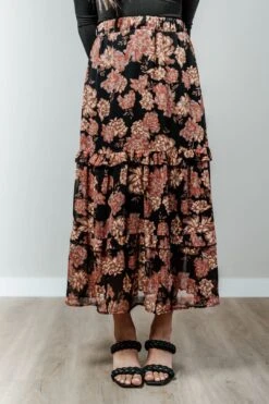 Fall floral is in the air! This midi skirt features a tiered-ruffle design, an elastic waist, and a sheer floral overlay. Pair this skirt with a long sleeve top for a clean look. Our “Fall Wanderer Midi Skirt” is perfect for adding a touch of color this season!