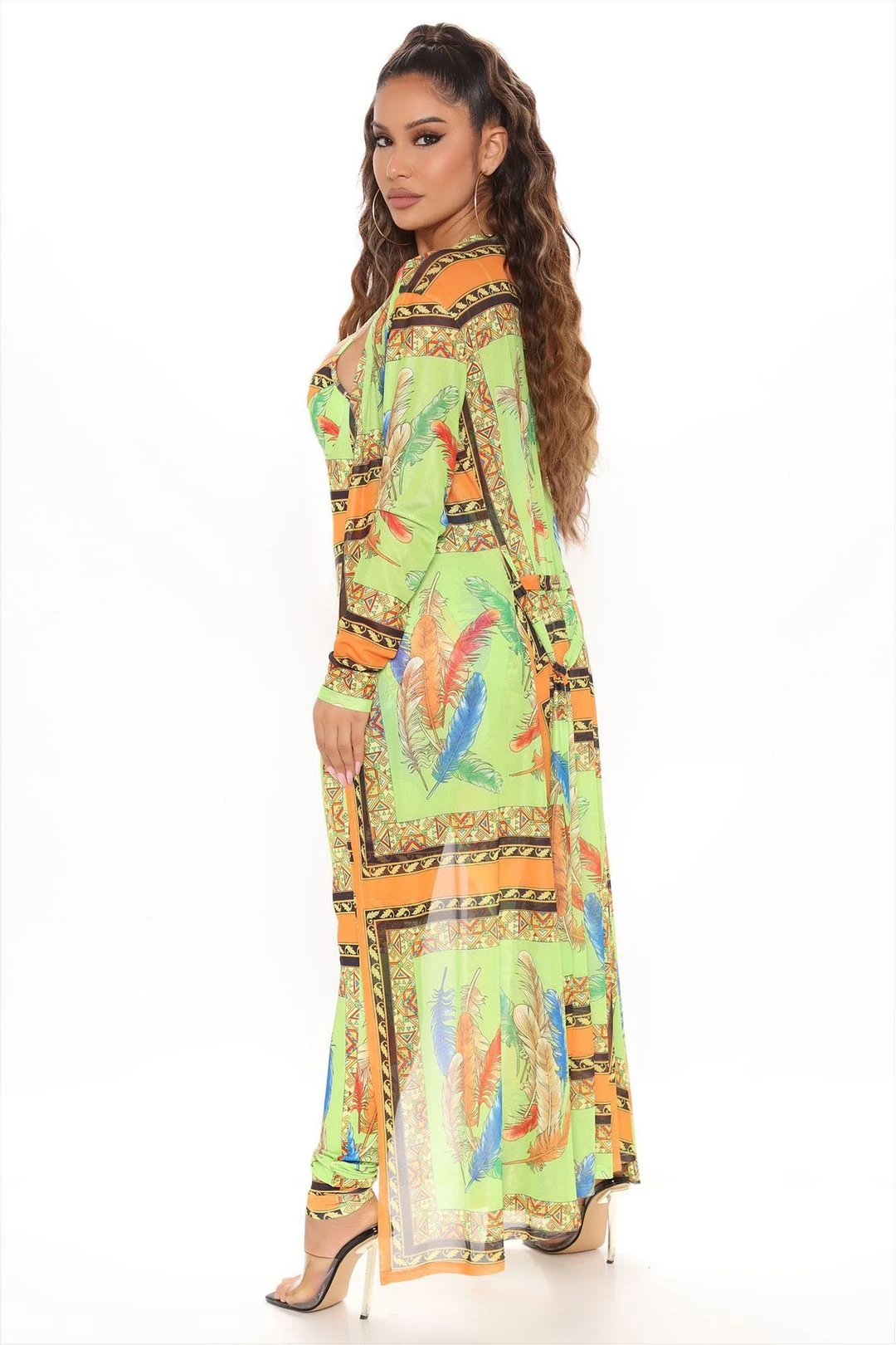 - Sheer Printed Long Sleeve Duster