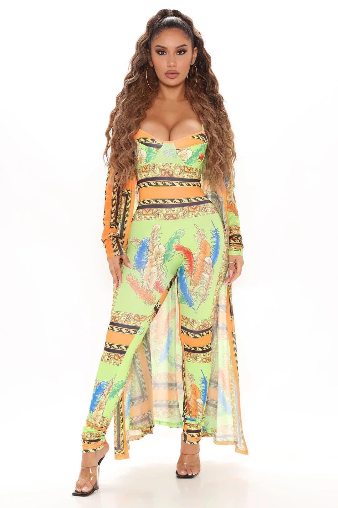 Feather Or Not Jumpsuit Set – Green/combo