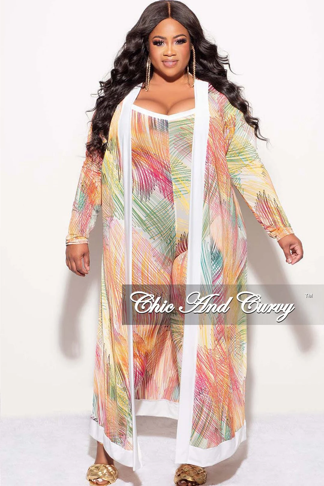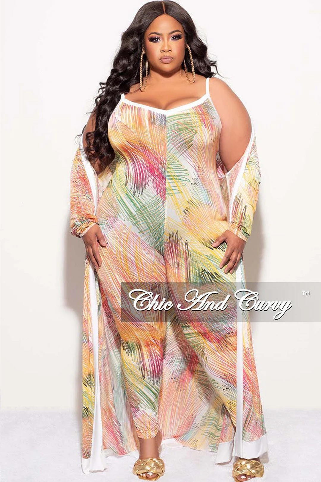 Final Sale Plus Size 2pc Duster & Spaghetti Strap Jumpsuit Set In Multi Color Print