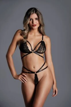 The Flame Bra Set is too hot to handle. The lace and strappy bralette are fully adjustable with a sexy skinny back strap accent. The strappy lace thong is utterly flirtatious with adjustable side straps for a perfect fit.