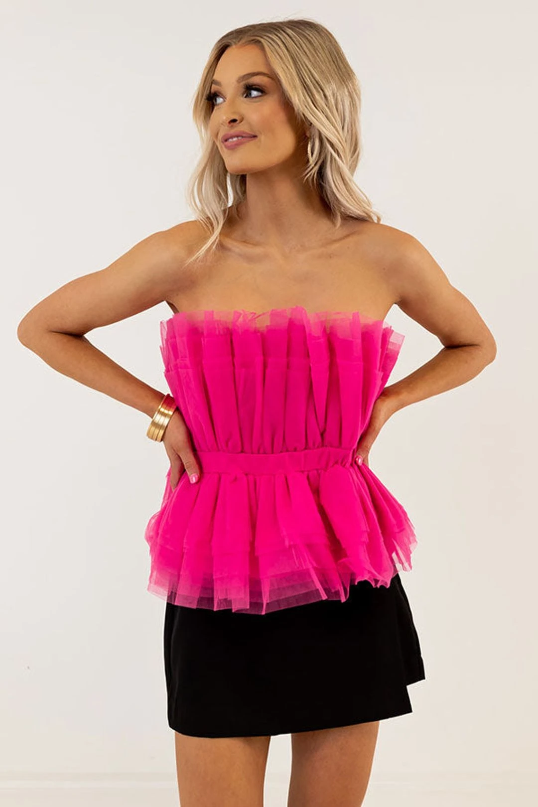 Gorgeous And Glam Tulle Peplum Top In Hot Pink