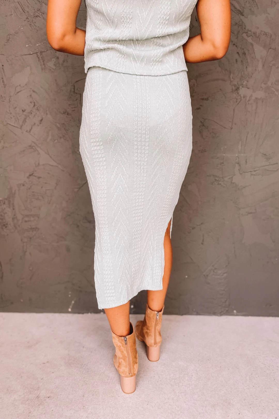 Every fall wardrobe needs a cable knit skirt! Our Hampton Cable Knit Pencil Skirt will pair best with all of your teesĀ and booties. This cable knit fabrication is soft and comfortable for all day wear. Features an elastic waist band and side slits for a flattering fit. Available in two colors.Ā