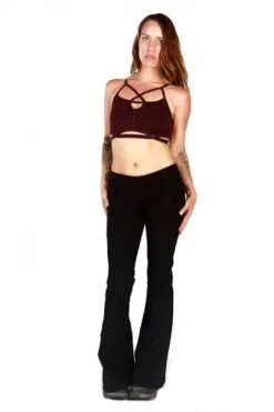 Our strappy harness bra is made from stretchy Cotton/Lycra and features rivet details throughout. Perfect for dance, yoga, performance, festivals and the beach. Makes a great base for layering.