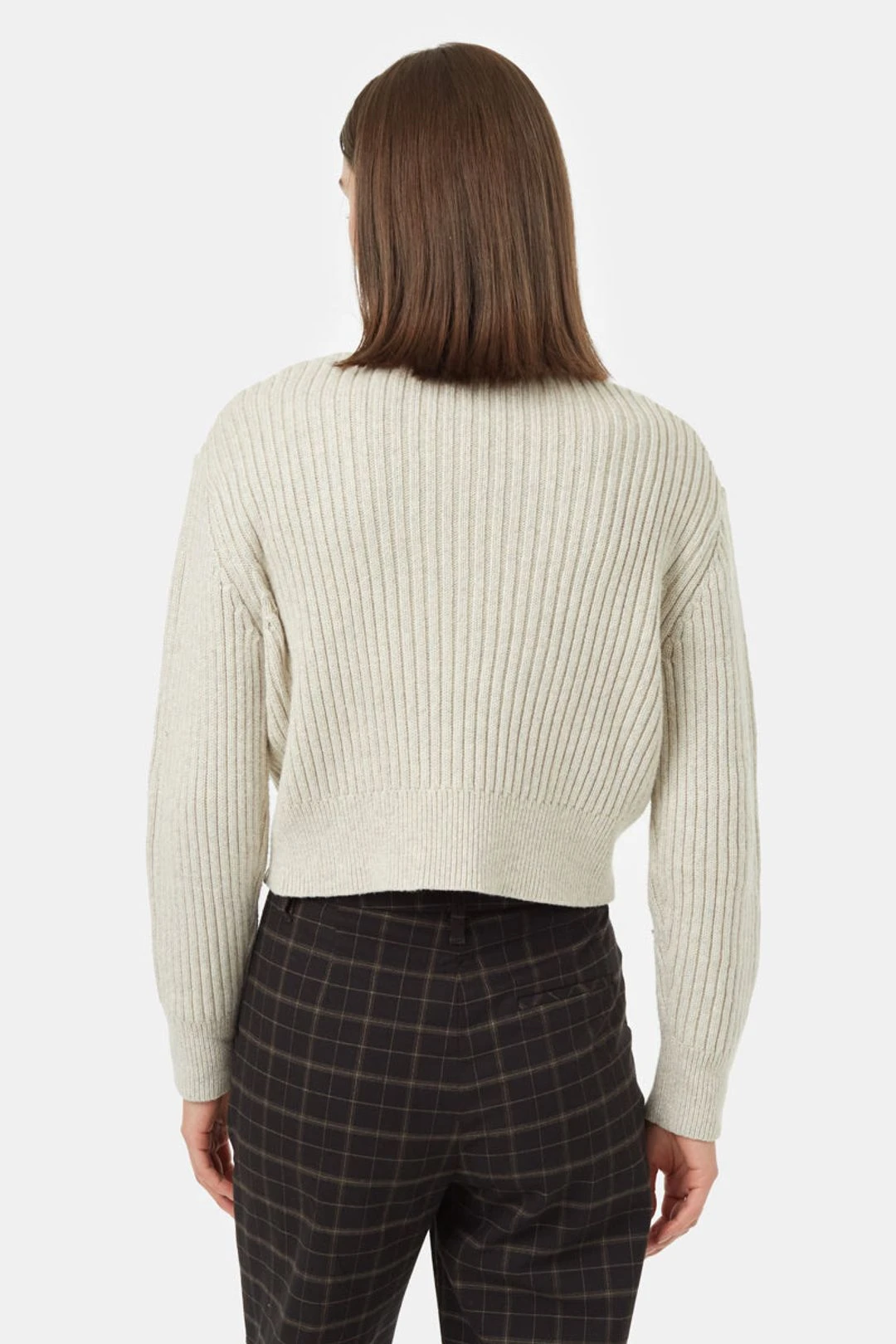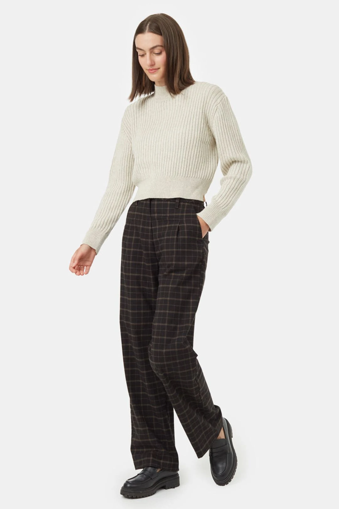 Stay cozy in the cool months with this classic, cropped mock neck. This sweater is made from a super soft blend of organic cotton, recycled polyester and sustainably sourced wool.
