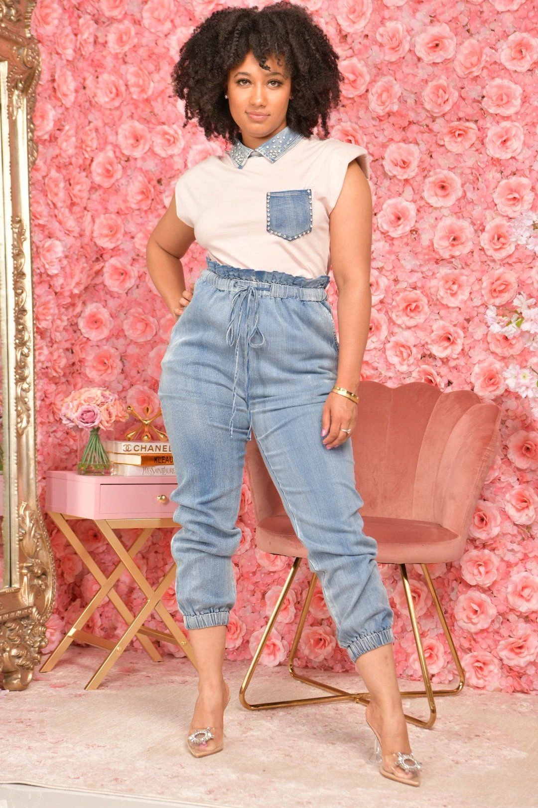 SLEEVELESS DENIM COMBO JUMPSUIT