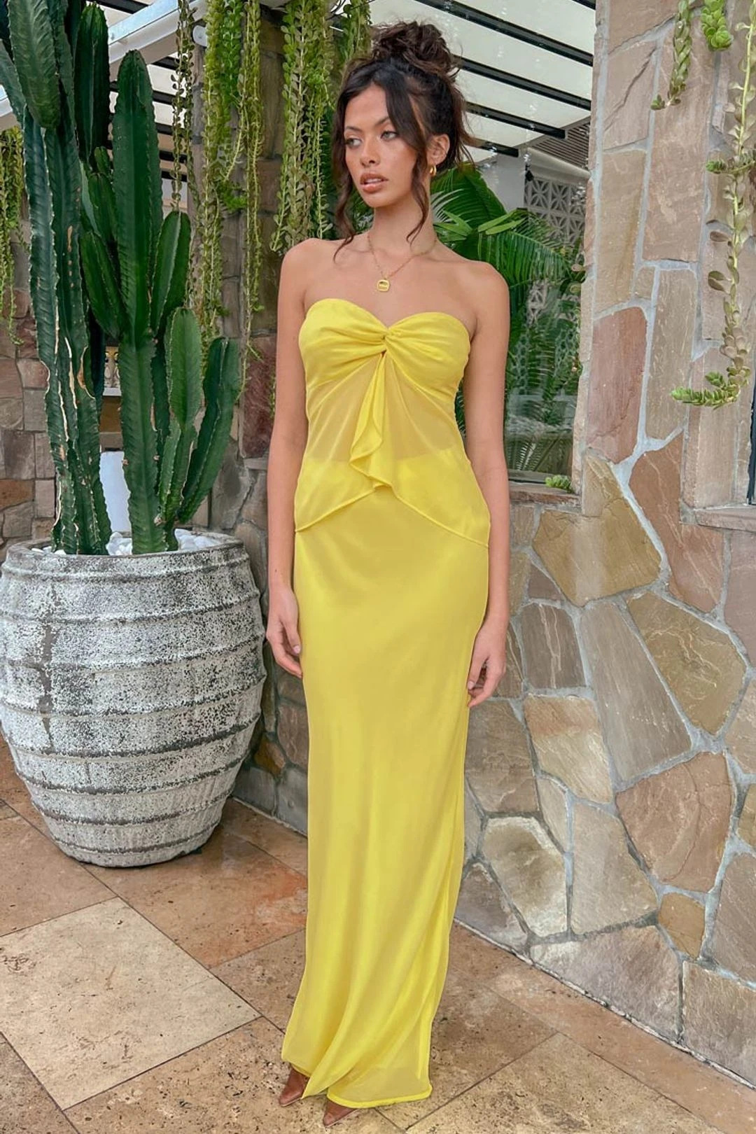 - Chase the sun in our yellow midi skirt! Whether you’re going for brunch or having sunset cocktails, our skirt is perfect for any vacation outfit. Style with the matching top and chunky gold jewellery.