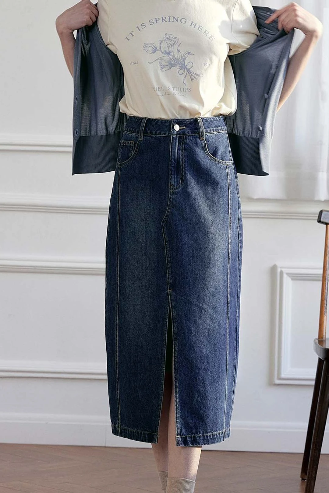Be the first to review “Julie Vintage Straight Slit Denim Skirt” Cancel reply