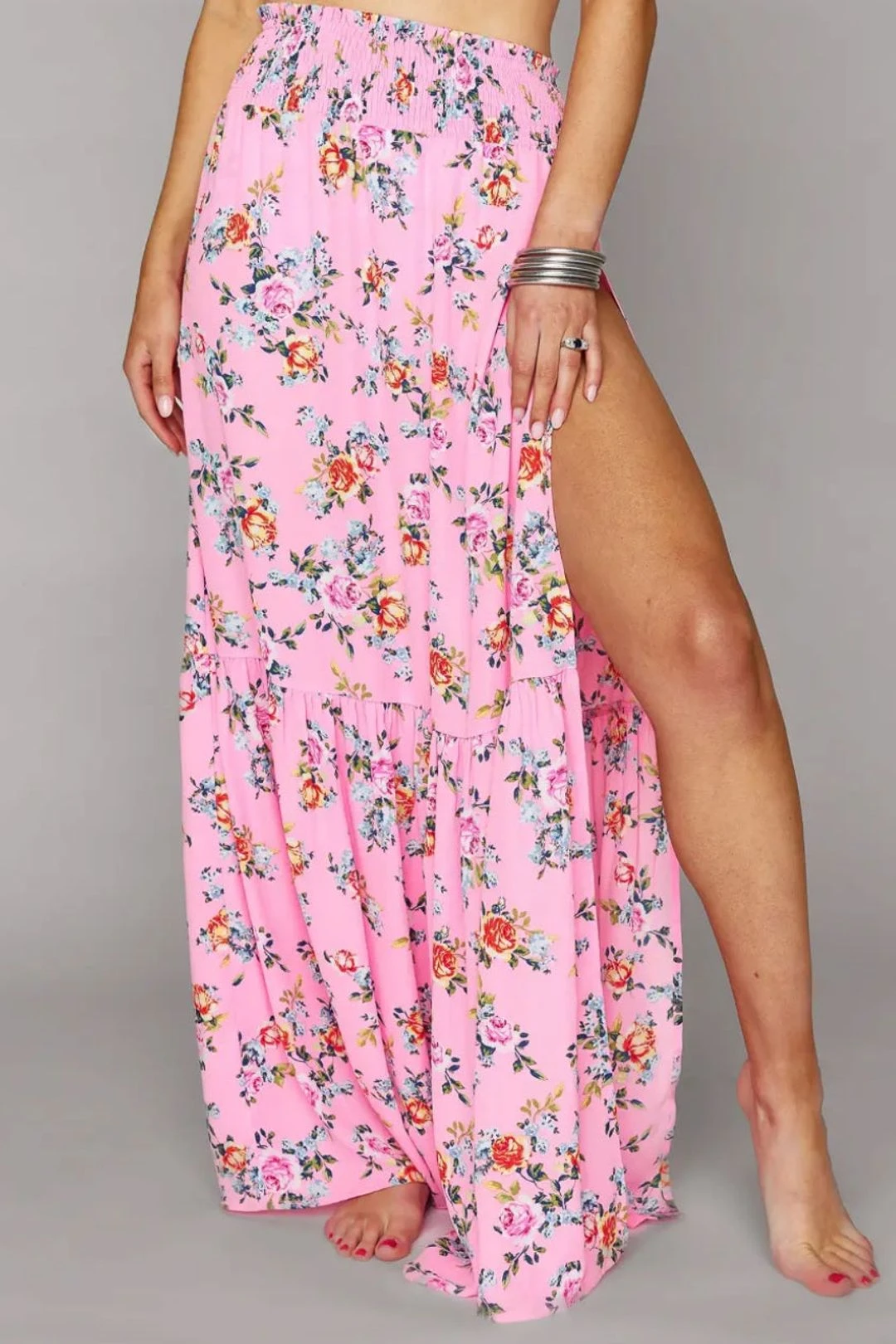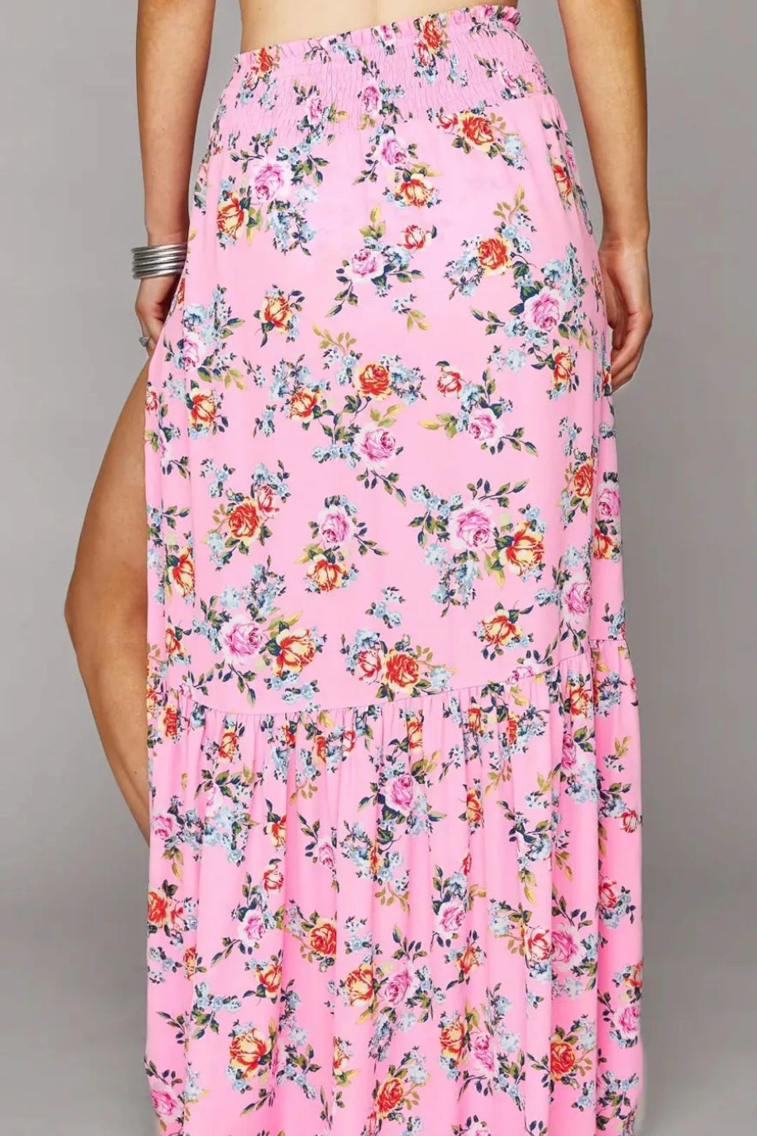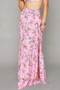 Order another drink and soak up the sun in the Keke Corsage maxi skirt! Elastic waist, maxi length, and slit at the left hip adds fun and flare to any swimmy! Layer over a bikini and pair with an oversized sun hat for the perfect vacay vibe!