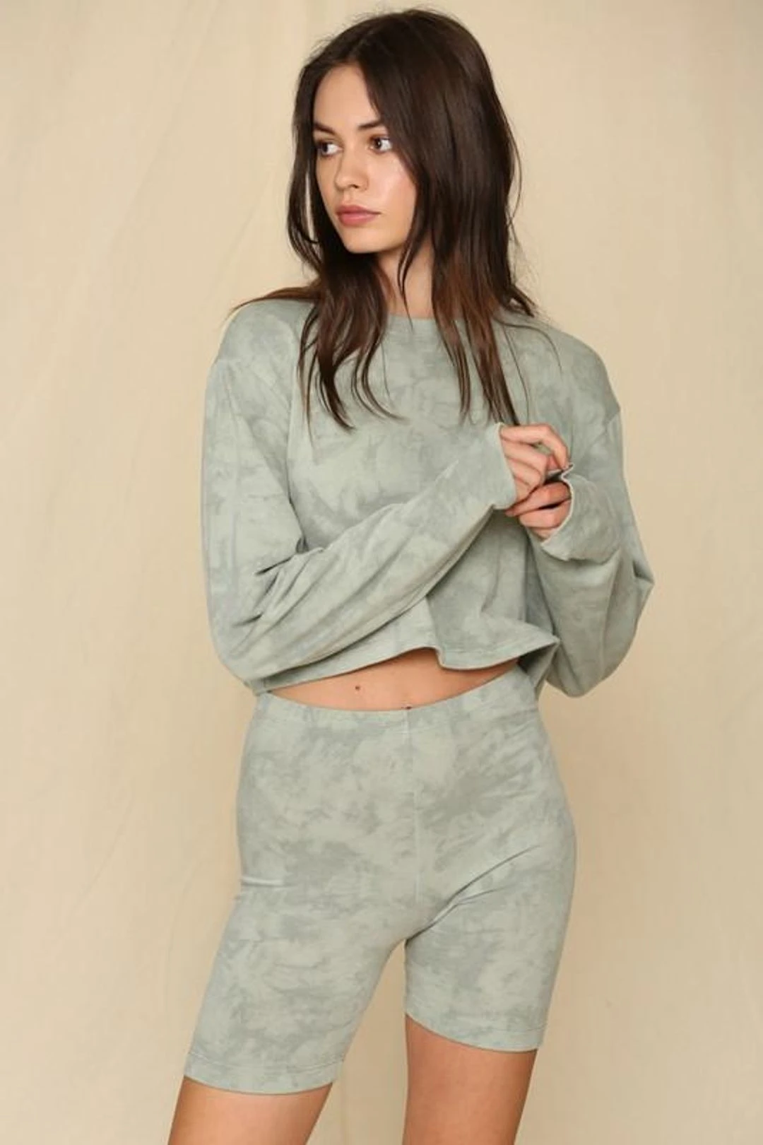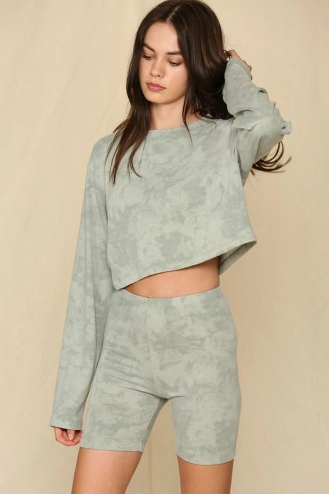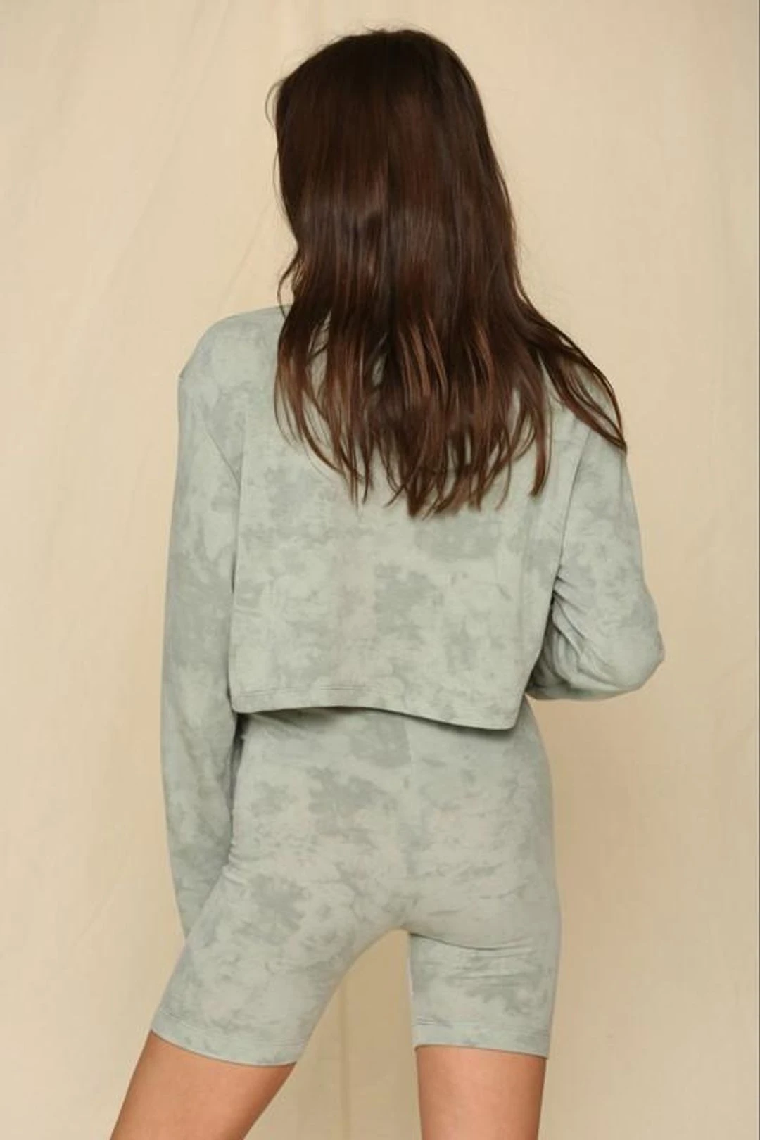 Tie dye Print Knit Rayon French Terry Long Sleeve Crop top (Set #BP783)