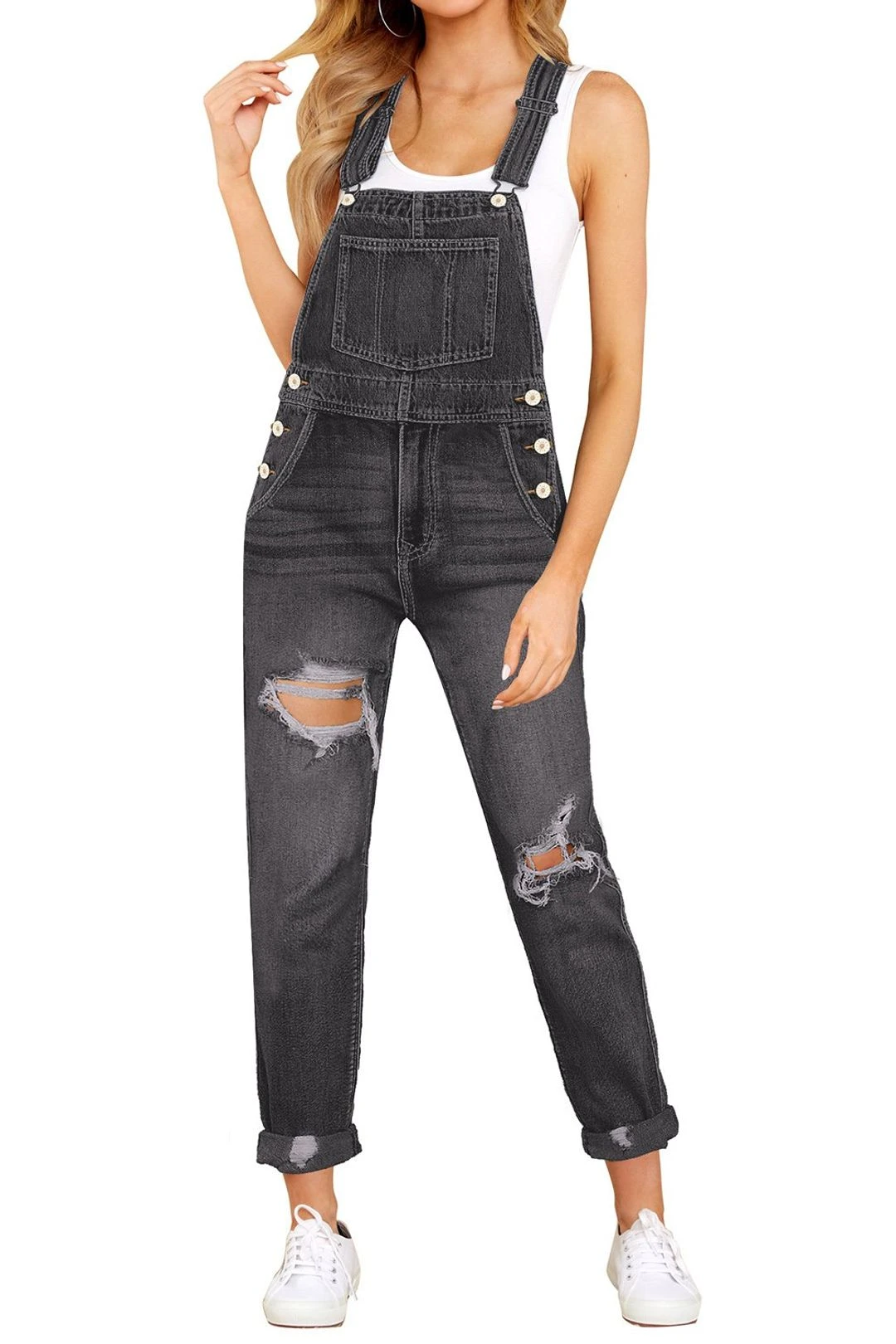- Long overalls for women in casual fit, feature adjustable straps with buckles and side button closure, making it easier to flatter your figure. Vintage solid color could match with kinds of tops for unique daily look.