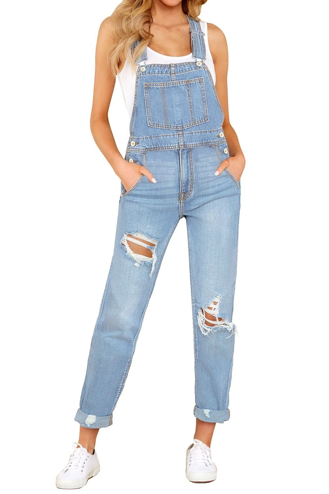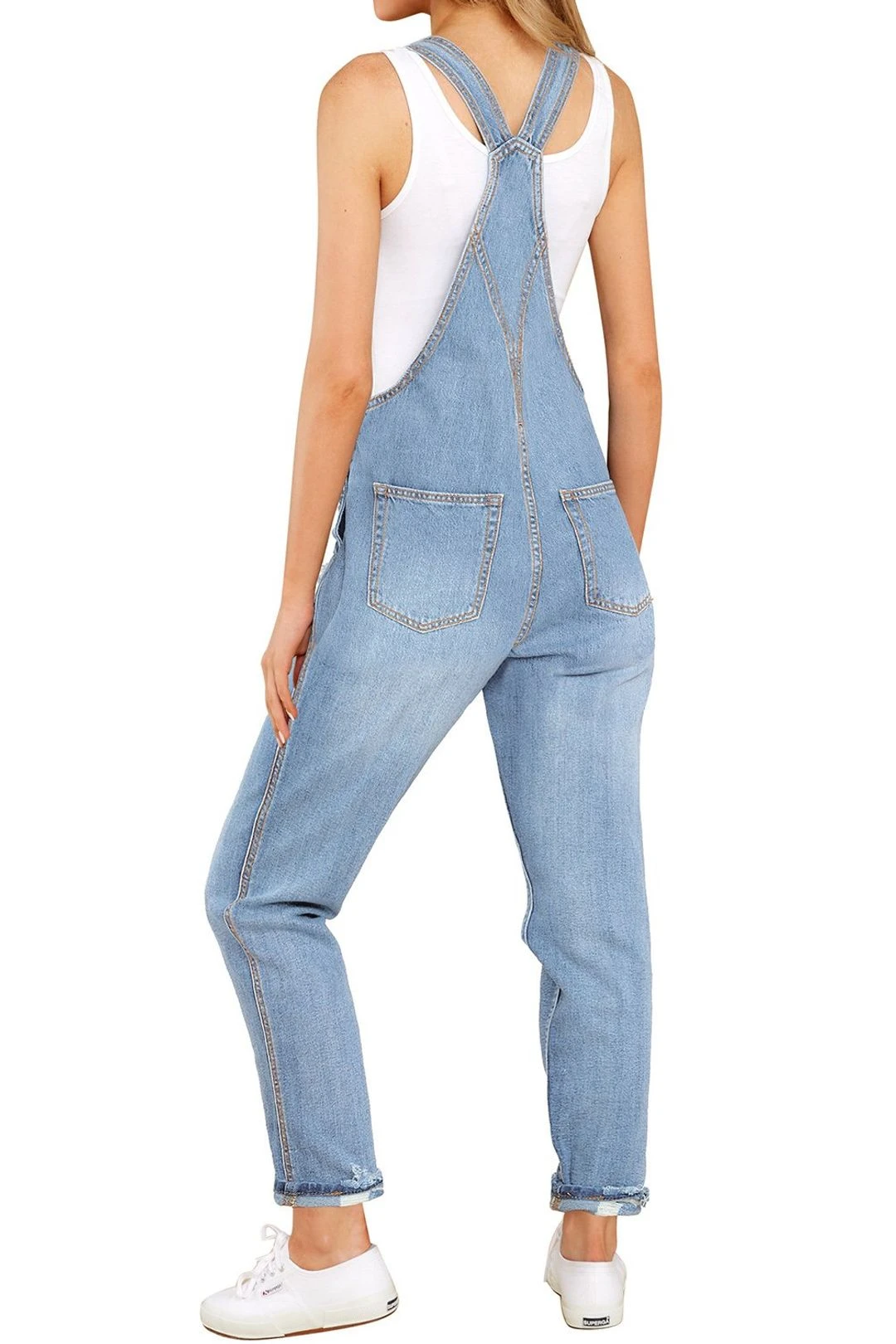 - Front bib pocket, side functional pockets and back pockets. Its optional cuffed hem creates more modern vibes and elongates your silhouette inadvertently. Womens jean overalls, work casual overalls, jeans overall jumpsuits