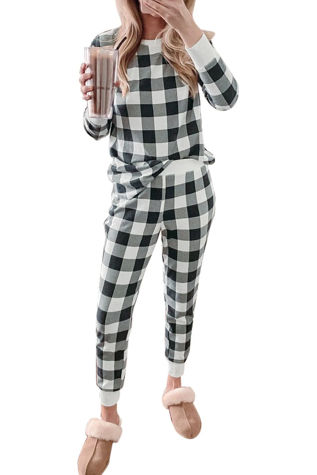 - An elastic drawstring waist, side pockets and cool jogger cuffs keep this look perfectly on trend around the house or even if you have to step out. Finished with a back keyhole closure. Two pieces pajamas set for women.