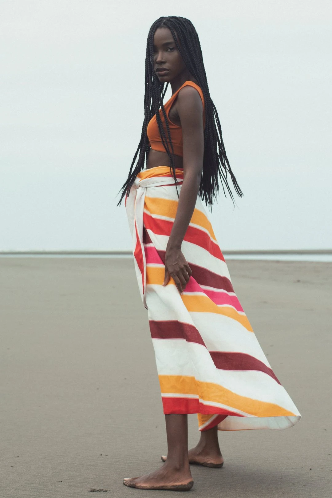 Wrap around reversible midi skirt with thin straps.