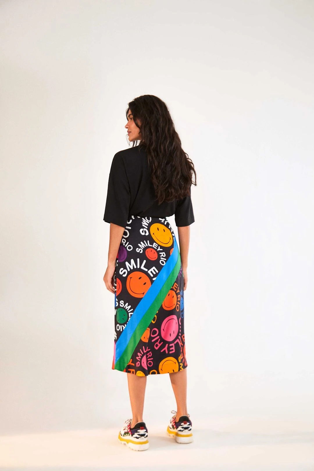 Your season is off to a happy start! The Mixed Type Smiley® Rio Midi Skirt is here to add more fun to your outfits with its pop color palette in an elevated fit. So invite your tops and layers to spread joy all around, whatever the plans, with high doses of optimism!
