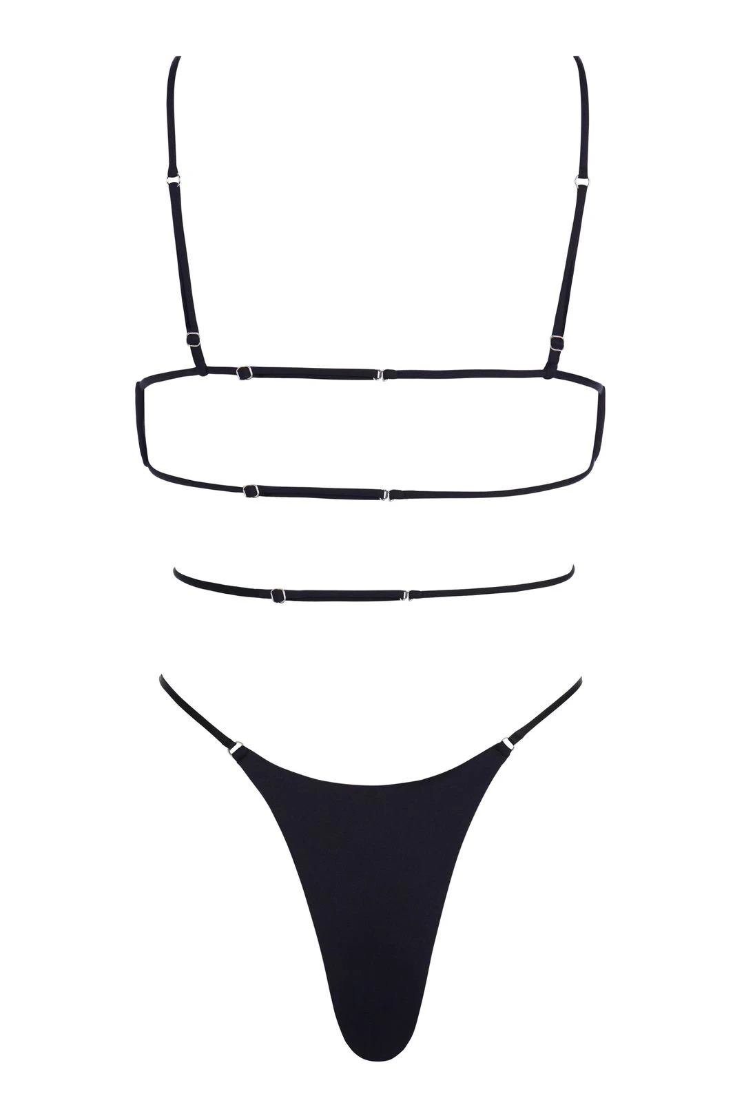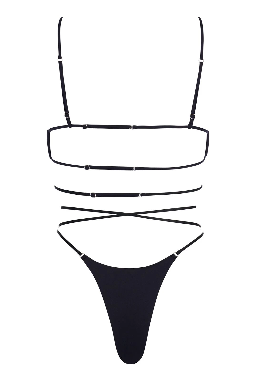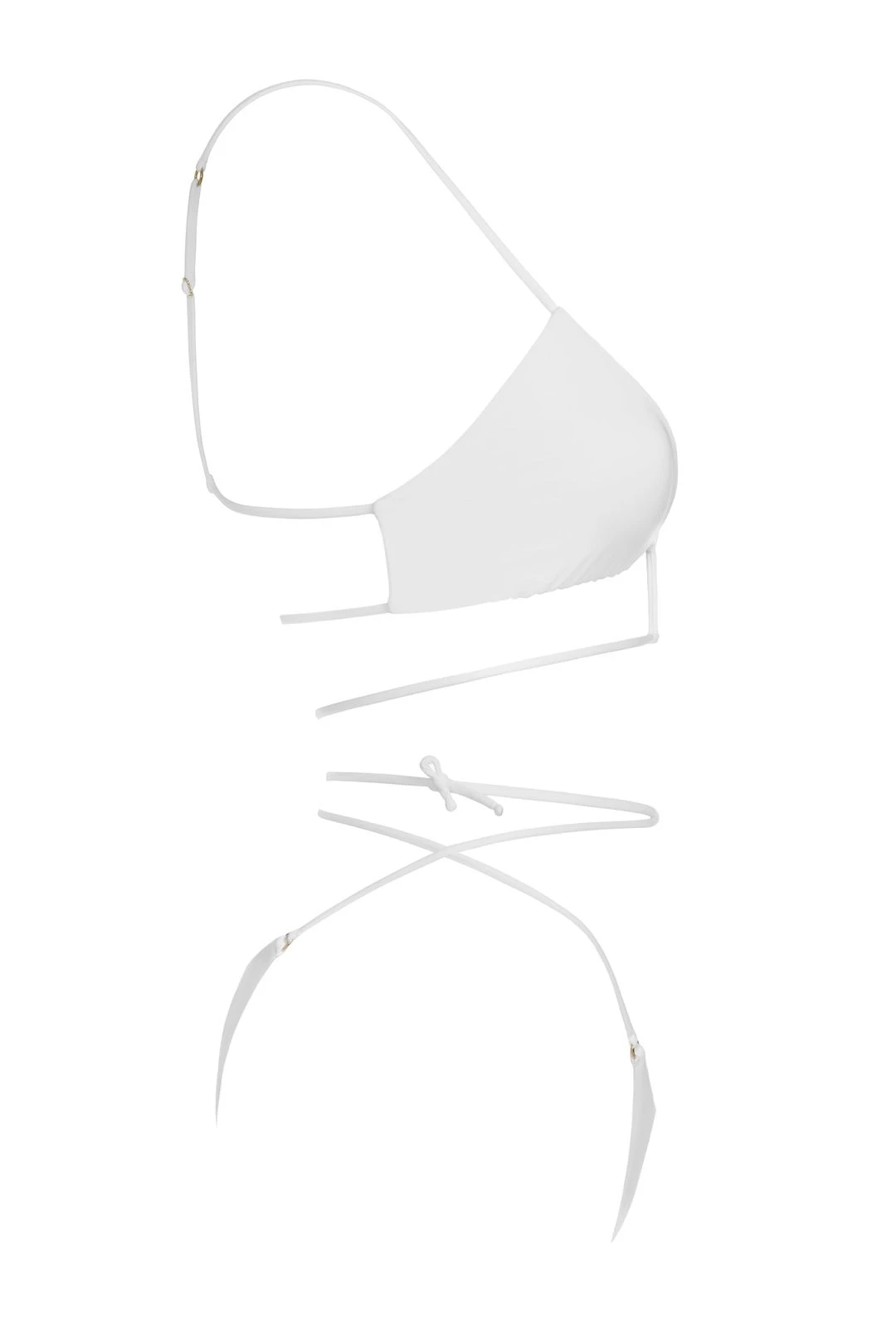 - Spaghetti straps go over the shoulders and connect to the bra fabric in back